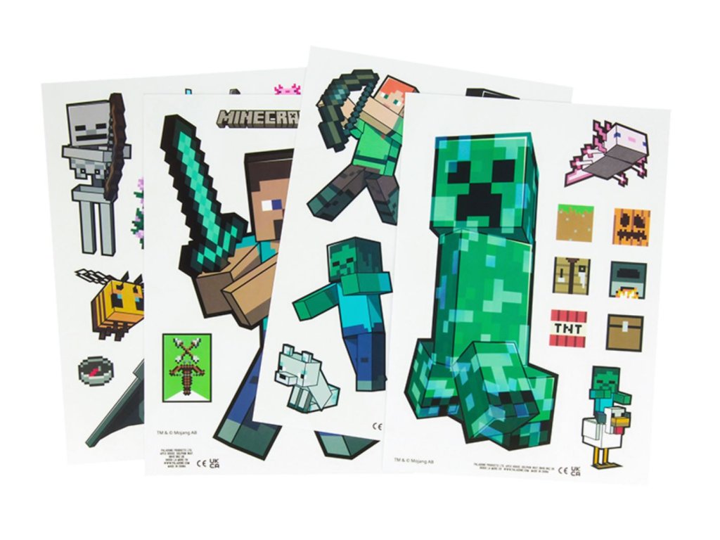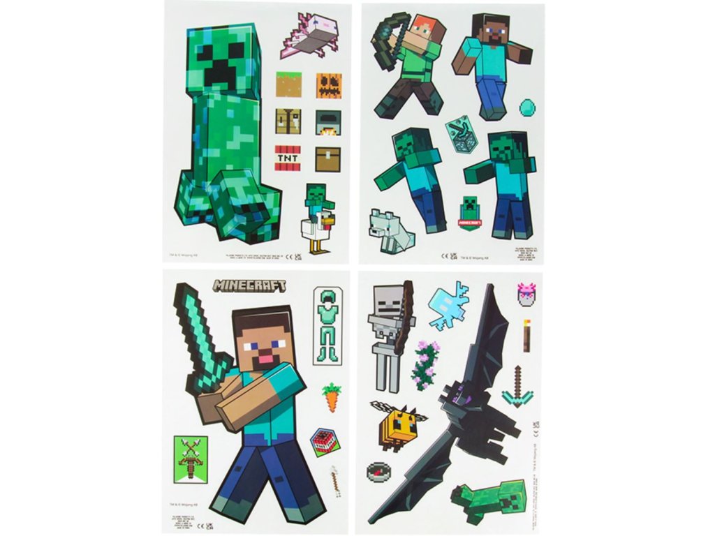 Set 4 listů (34 samolepek) na okno vyvedených v grafice ikon a postaviček z počítačové hry Minecraft. Opakovaně použitelné samolepky okno. Balení obsahuje několik modelů samolepek. Jsou voděodolné a opakovaně použitelné.