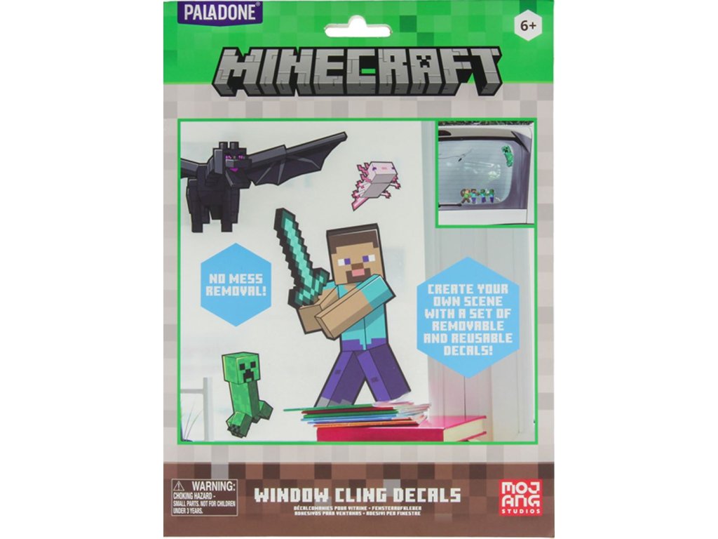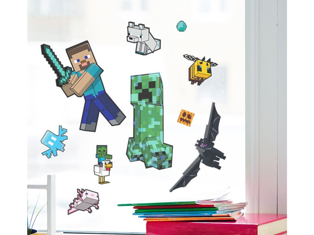 Oficiální produkt - set nálepek na okno z katalogu výrobků s grafikou a licencí populární videoherní série Minecraft.