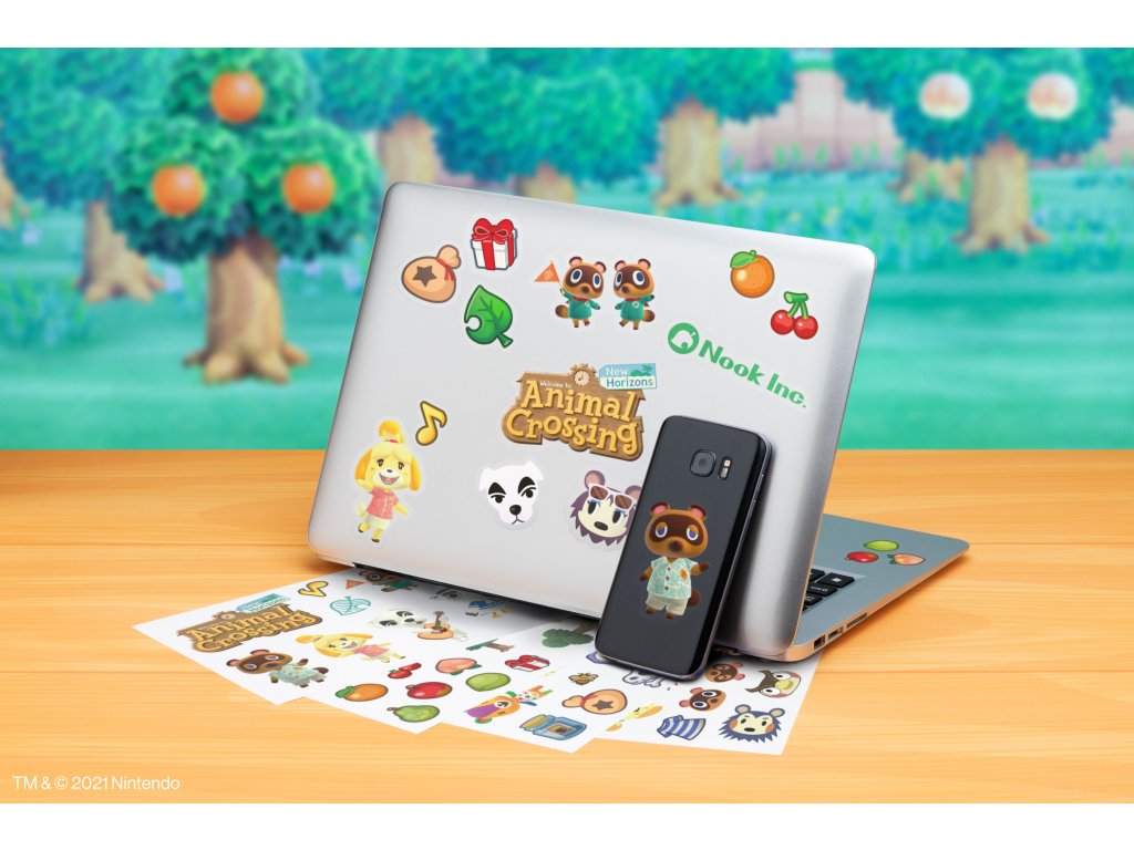 Oficiální produkt - set nálepek na elektroniku z katalogu výrobků s grafikou a licencí populární videohrY Animal Crossing od herní konzole Nintendo.