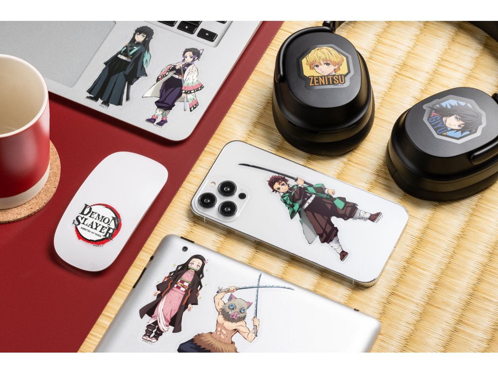 Oficiální produkt - set nálepek na elektroniku z katalogu výrobků s grafikou a licencí populární japonské mangy Demon Slayer (Zabiják démonů).