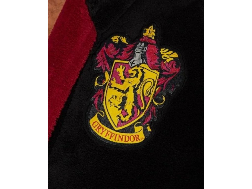 Kvalitní černý dětský župan s červenými a žlutými detaily, který má na hrudi vyšitý erb Nebelvírské koleje. Skvěle se hodí pro chlapce i děvčata, kteří jsou fanoušky filmu Harry Potter.