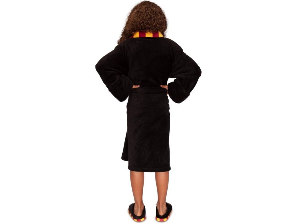 Černý dětský župan s černým páskem a motivem školy - Bradavice. Skvěle se hodí pro kluky a holky, kteří jsou fanoušky filmu Harry Potter.