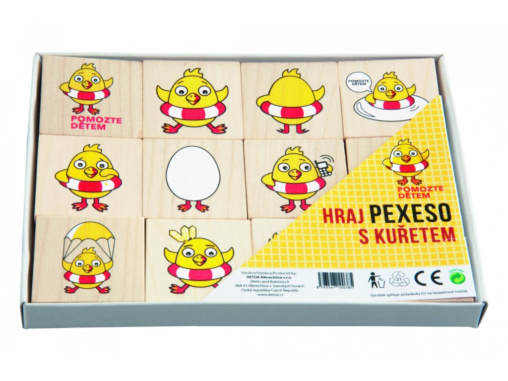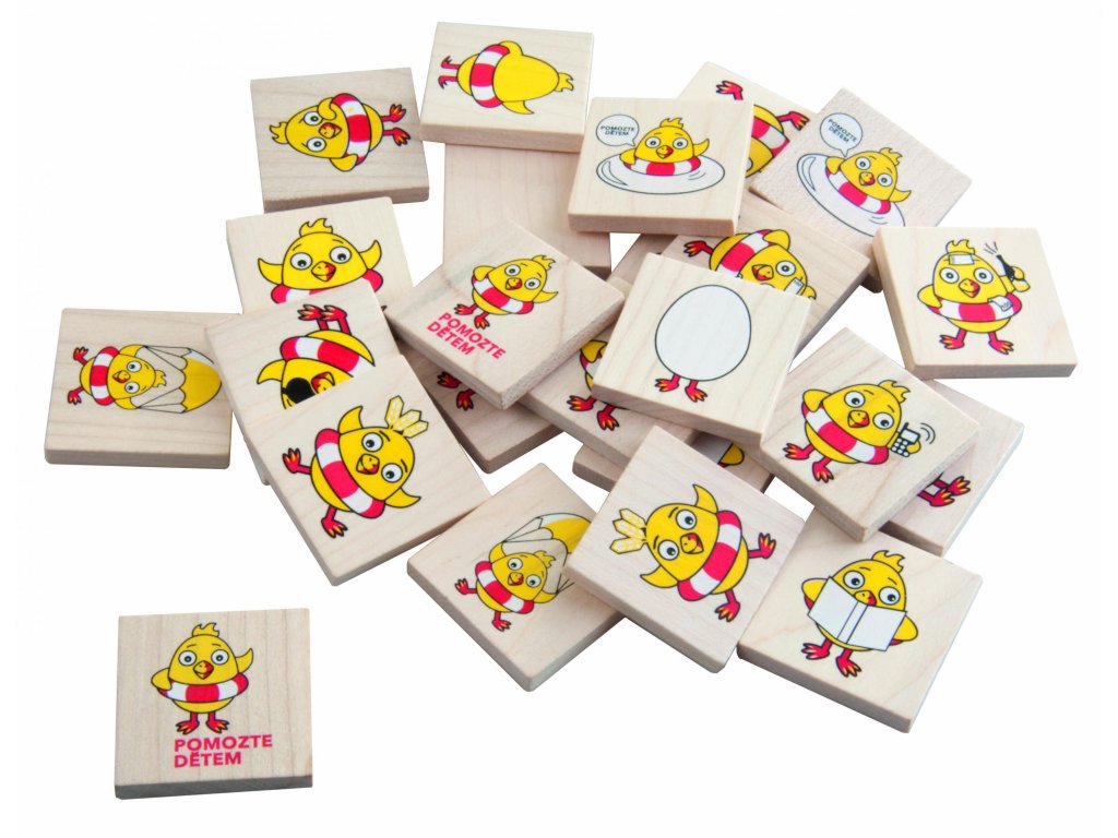 Dřevěná hra s motivem nadace "Kuře" pro trénink paměti a postřehu. Obsahuje 24 kamenů.