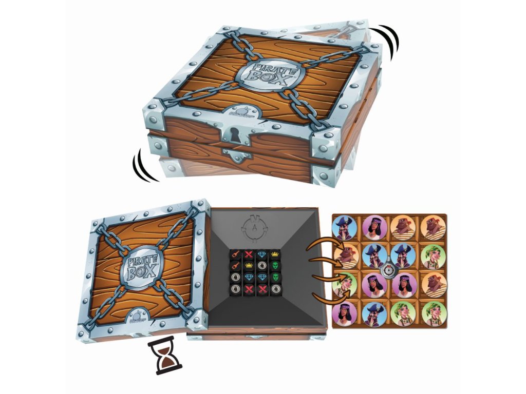 Jak rozdělit pirátský poklad? Zapamatujte si, co chcete, zatřeste truhlou a rozdělujte. Kdo má nejlepí paměť a strategii, získá největší podíl. Zábavná kostková pamatovací hra pro 2-4 hráče, věk 8+