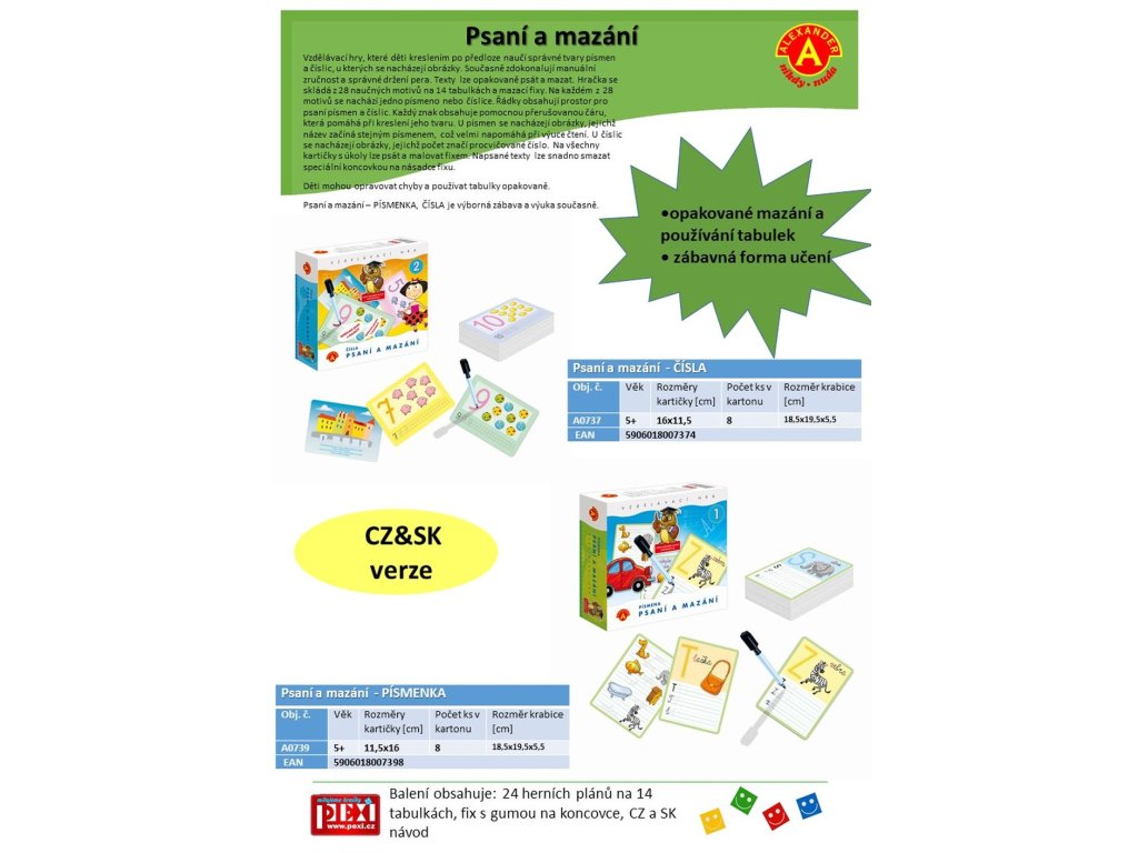 nacházejí obrázky, což velmi napomáhá i při výuce čtení. Hra zdokonaluje manuální zručnost a správné držení pera. Texty lze opakovaně psát a mazat.