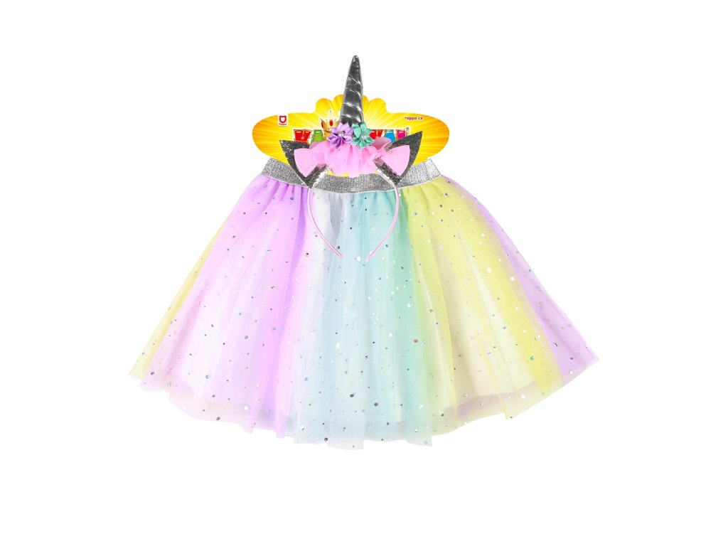 Úchvatná sukýnka TUTU je určena pro holčičky ve věkovém rozmezí 3-7 let. Nadýchaná sukně v duhových barvách je dolněna sříbrnou gumou v pase. Součástí této sady je senzační čelenka jednorožce se sříbrným rohem a barevnými růžemi! Délka sukýnky je cca 30 cm.