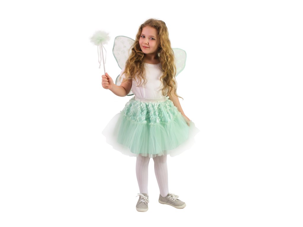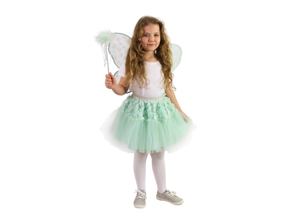 Krásná vílí sada pro malé holčičky! Sada obsahuje zelenou tylovou TUTU sukýnku se saténovou spodničkou. Sukně je zdobena drobnými květinkami a stříbrnou gumou v pase, k tomu perfektně sladěná křídla a hůlka ve stejném motivu. Sukně je dlouhá cca 35 cm a je vhodná pro obvod pasu 50-60 cm. Určeno pro holčičky ve věkovém rozmezí 3-10 let (104-146 cm). Nejen letos je potřeba myslet EKO-nomicky i EKO-logicky! EKO-balení je vhodné zejména pro e-shopy kde zákazník nakupuje dle fotografie a není třeba velkého balení s věšákem. EKO-logicky – na balení bylo použito méně plastu a dalších materiálů. Jedná se o malý transparentní obal s fotografií. EKO-nomicky –EKO-obal zabere jen polovinu místa – šetřete skladová místa s námi!