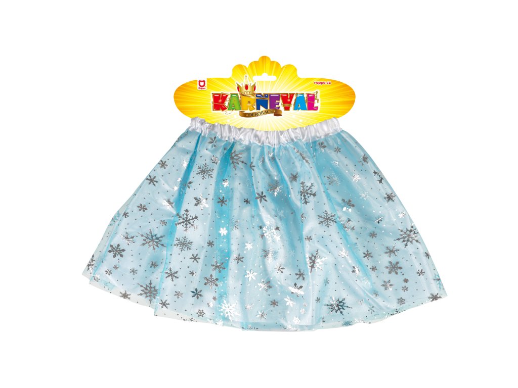 Modrá sukně TUTU v pase na gumičku! Sukýnka je určena pro holčičky ve věkovém rozmezí 3-7 let. Nadýchaná suknička je zdobena třpytivými sněhovými vločkami a saténovým lemováním v pase. Délka sukýnky je cca 30 cm. Součástí je čelenka se sněhovými vločkami.
