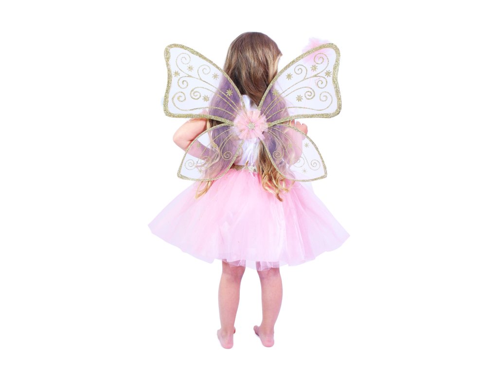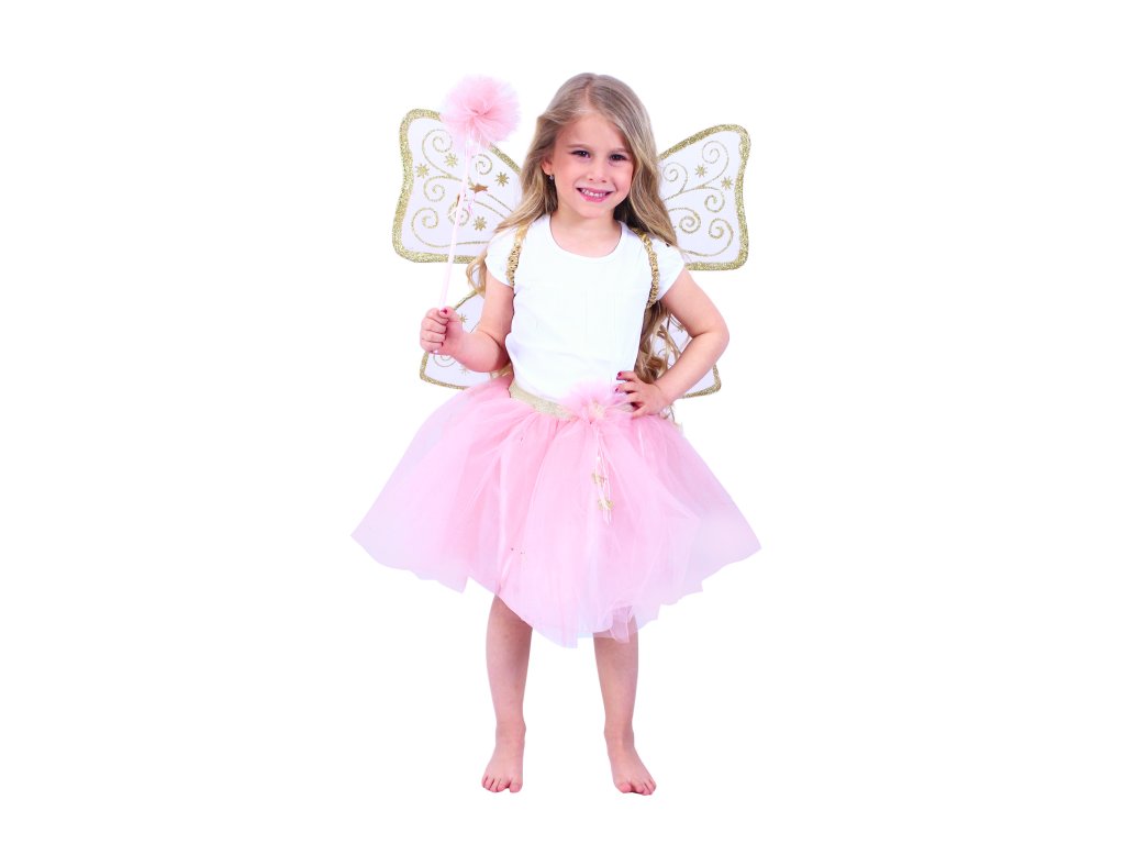 Roztomilá sukýnka TUTU a k tomu perfektně sladěná křídla! Sukénka je určena pro holčičky ve věkovém rozmezí 3-10 let (104-146 cm), obvod pasu 48-72 cm. Součástí kostýmu je růžová tylová sukně v pase zdobena květem, oslnivá křídla se zlatým potiskem a růžová hůlka! Délka sukně cca 35 cm. Nejen letos je potřeba myslet EKO-nomicky i EKO-logicky! EKO-balení je vhodné zejména pro e-shopy kde zákazník nakupuje dle fotografie a není třeba velkého balení s věšákem. EKO-logicky – na balení bylo použito méně plastu a dalších materiálů. Jedná se o malý transparentní obal s fotografií. EKO-nomicky –EKO-obal zabere jen polovinu místa – šetřete skladová místa s námi!