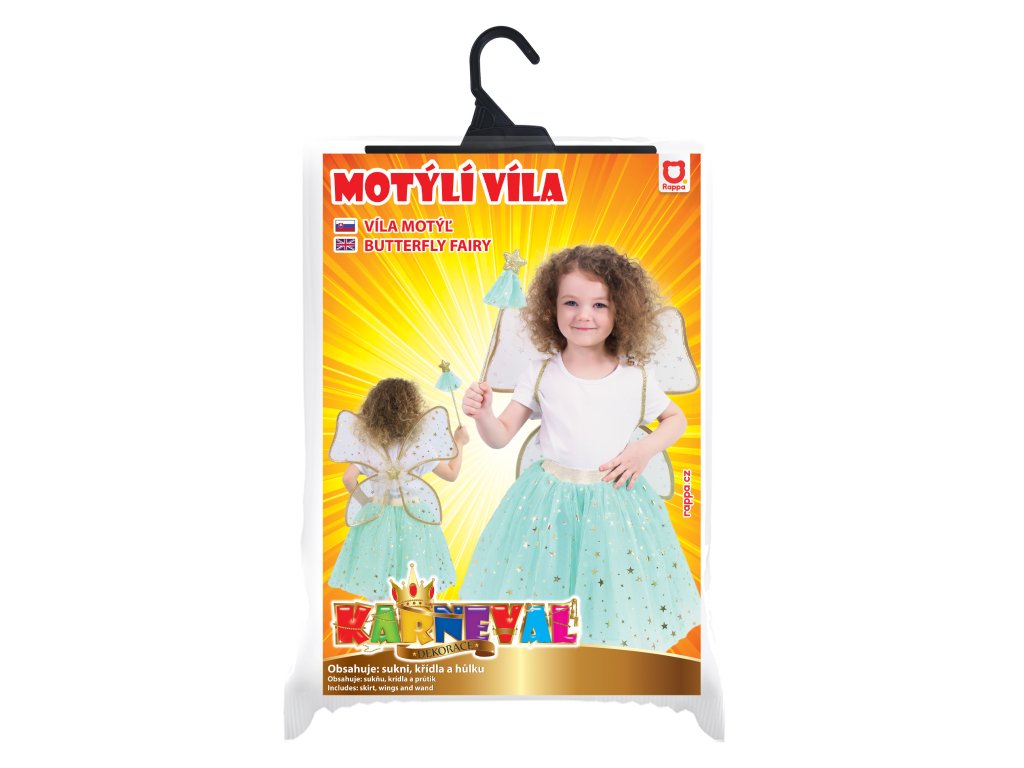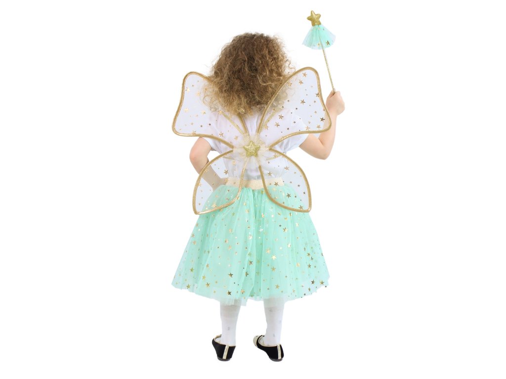 Dětský kostým tutu sukně zelená víla s hůlkou a křídly