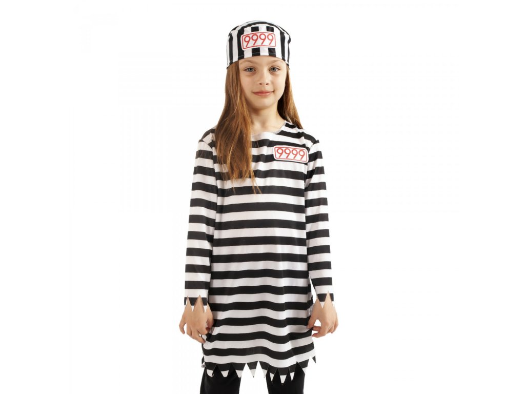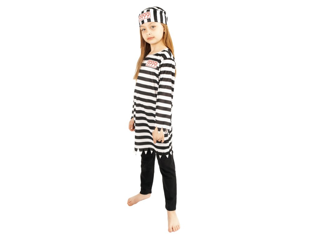 Pruhovaný karnevalový kostým vězeňkyně v typických bílo-černých barvách ve velikosti S je určen pro děvčata ve věku 4-6 let (105-116 cm). Kostým obsahuje dlouhé triko a čepici s číslem vězně. Nejen letos je potřeba myslet EKO-nomicky i EKO-logicky! EKO-balení je vhodné zejména pro e-shopy kde zákazník nakupuje dle fotografie a není třeba velkého balení s věšákem. EKO-logicky – na balení bylo použito méně plastu a dalších materiálů. Jedná se o malý transparentní obal s fotografií. EKO-nomicky –EKO-obal zabere jen polovinu místa – šetřete skladová místa s námi!