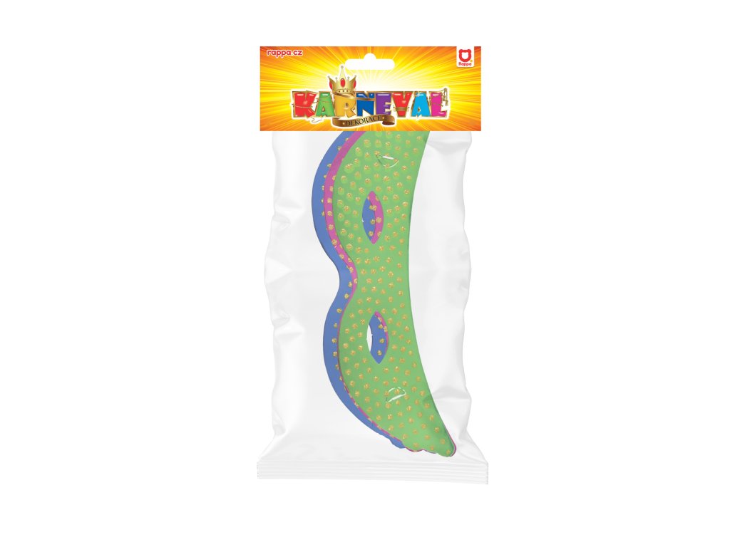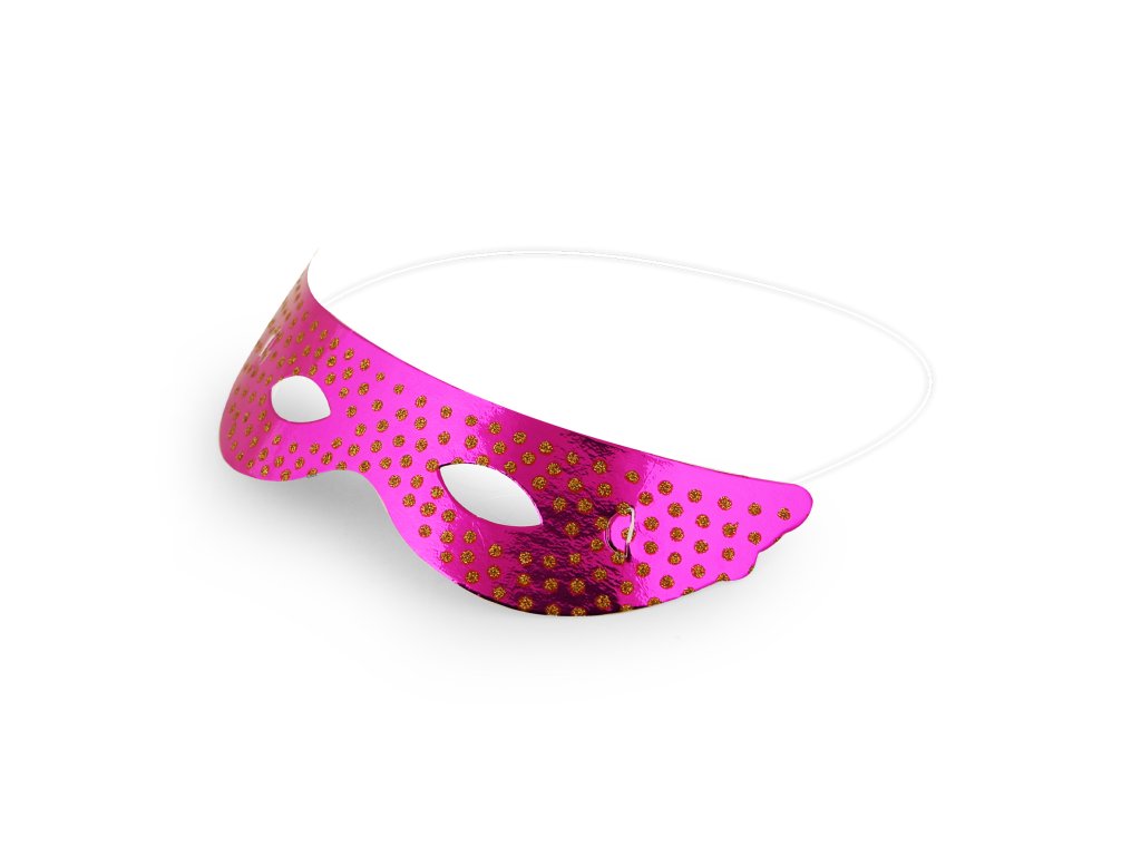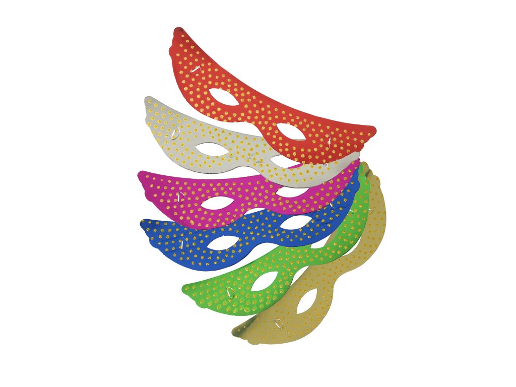 Tajemná škraboška! Tento parádní kousek na gumičku nabízíme v různých barvách po 6 kusech v balení. Škraboška je zdobena oslnivými puntíky se zlatými třpytkami.