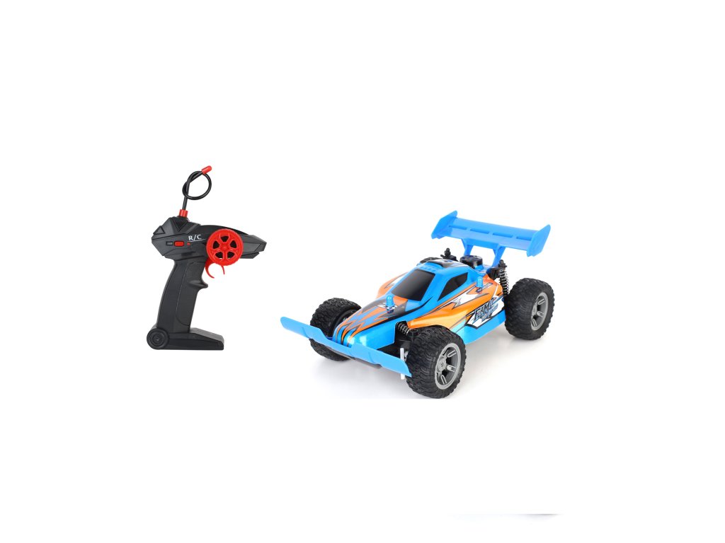 Bugina RC na dálkové ovládání. Rozměry 26,3x12,5x7,5 cm. Rychlost 25 km/h. Frekvence 27 MHz. Pistolový ovladač. Světelné efekty. 5xAA baterie do auta, 2xAA do ovladače nejsou součástí. Přepínač ON/OFF na spodní straně buginy, tlačítko ON/OFF na ovladači.