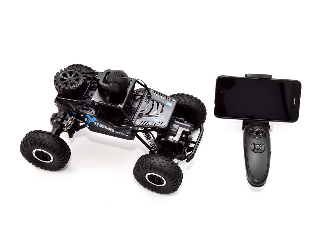 Auto na dálkové ovládání, které jezdí všemi směry a zvládne i těžší terén. Navíc si můžeš mobil upevnit na dálkový ovladač a nainstalovat aplikaci LH CAR, pomocí které můžeš auto řídit nebo natáčet videa. Aplikaci stáhneš na Google play nebo App store. Auto můžeš řídit buď mobilním telefonem nebo ovladačem. Provoz auta na bateriový pack (součást balení) - nabíjení 2,5 hodiny, doba jízdy 20 minut. Při nabíjení svítí na nabíječce červená kontrolka, když je auto nabité svítí tmavě červeně. Dálkový ovladač provoz na 2x1,5V baterie typu AA (nejsou součást balení)