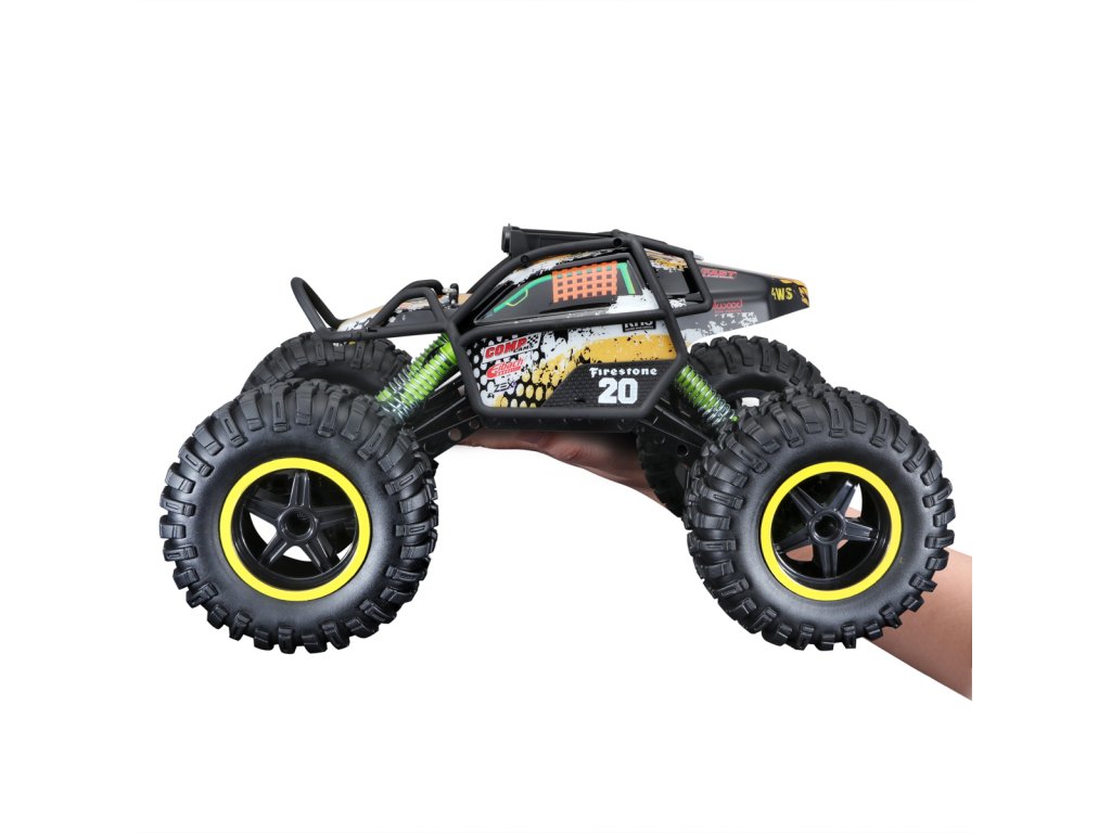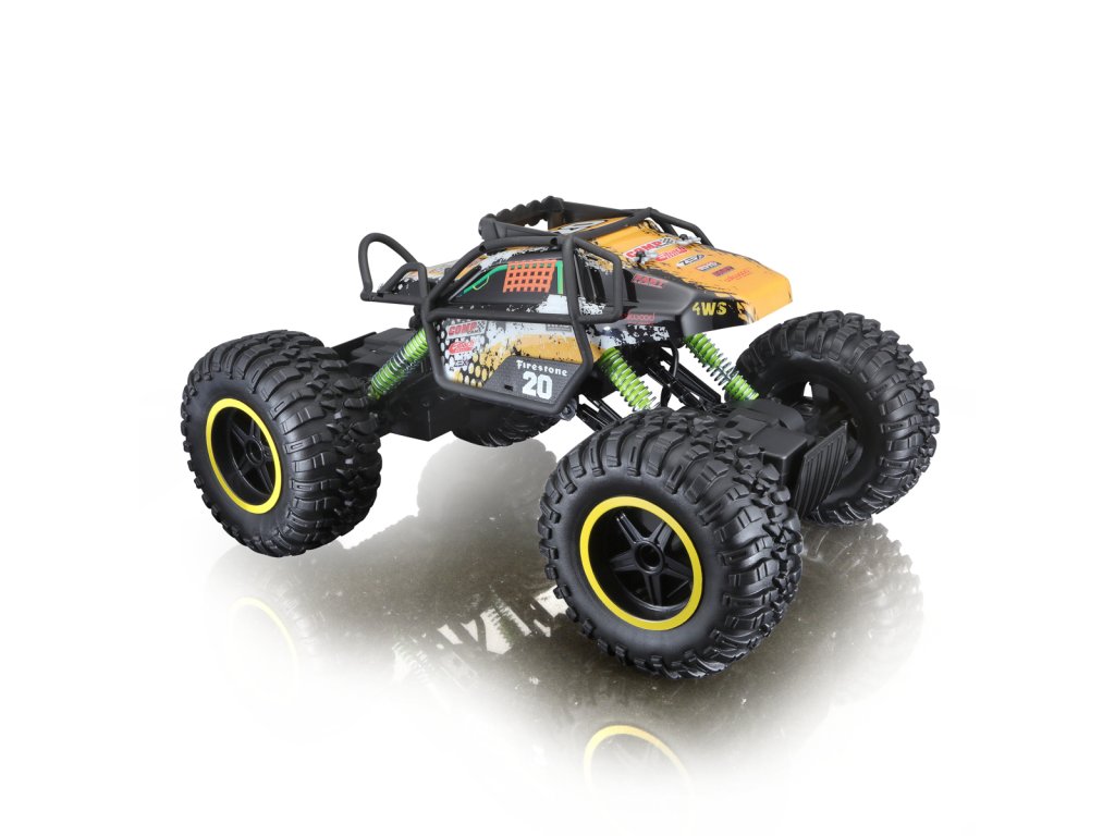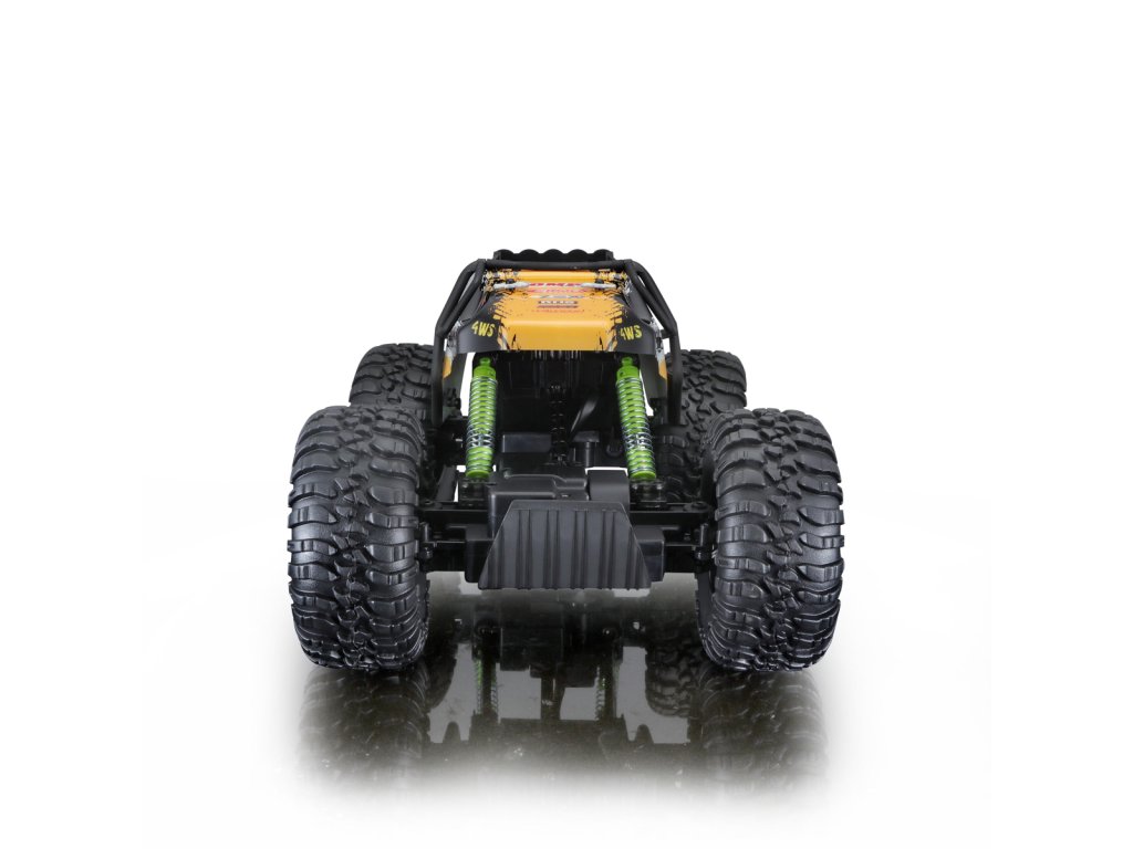 RC Rock Crawler Pro Series 4WS. Toto jedinečné terénní vozidlo je vybaveno skutečným řízením všech 4 kol. Pomocí přepínače na ovladači lze vybrat, která kola budete ovládat. Přední a zadní kloubové odpružení kol. Pohon všech čtyř kol. 2,4 GHz pro špičkový výkon. Ovládací rozsah je 35 metrů. Možnost ovládaní najednou a na jednom místě až pro 4 osoby. Nastavení vyrovnání řízení. USB dobíjecí baterie 6,4V Li-ion (500mAh), která je součástí balení. USB nabíjecí kabel (součástí balení). Ovladač funguje na 2 AA baterie (součástí balení). Rozměry balení: 27,9 x 50,8 x 30,5 cm. Doporučený věk: 8+