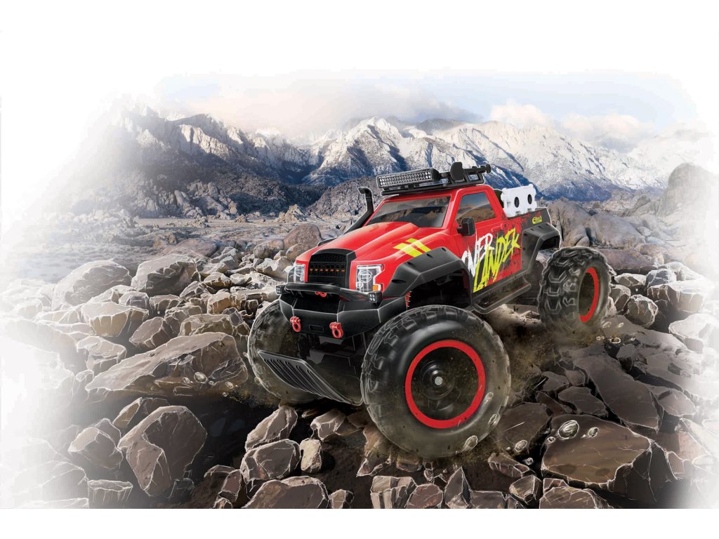 Tech RC, Overlander,. Overlander - dálkově ovládaný špičkový RC model + mohutné terénní pneumatiky. Vozidlo: vestavěná lithiová baterie + nabíjení pomocí USB. Ovladač: 2 ks baterie AA 1,5V, které jsou součástí balení. Dosah vysílače: 35 metrů, rychlost: 7,9 km/h, doba jízdy: 15 minut. Frekvence 2,4 GHz umožňuje souběžnou jízdu až se 4 RC modely. Délka modelu cca 35 cm. Rozměry balení: 49,2x25,1x26cm. Nevhodné pro děti do 3 let. Věk: 8+