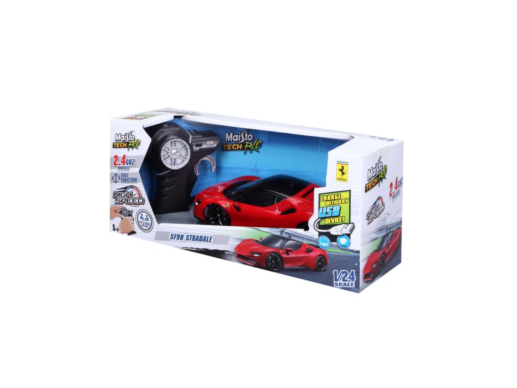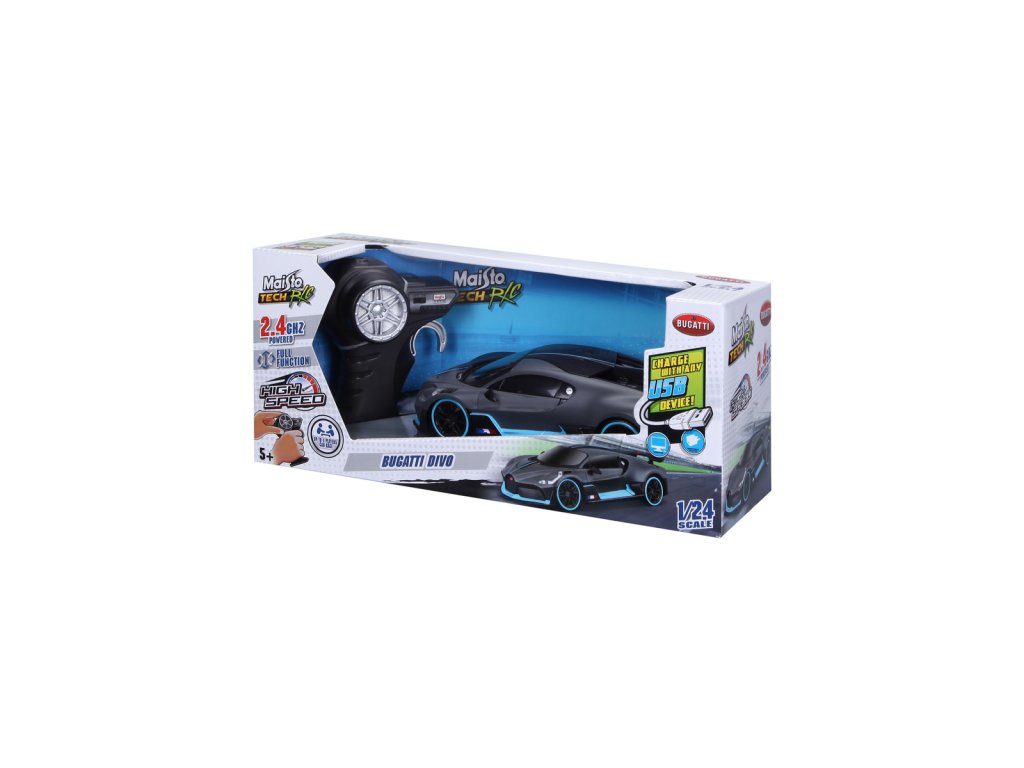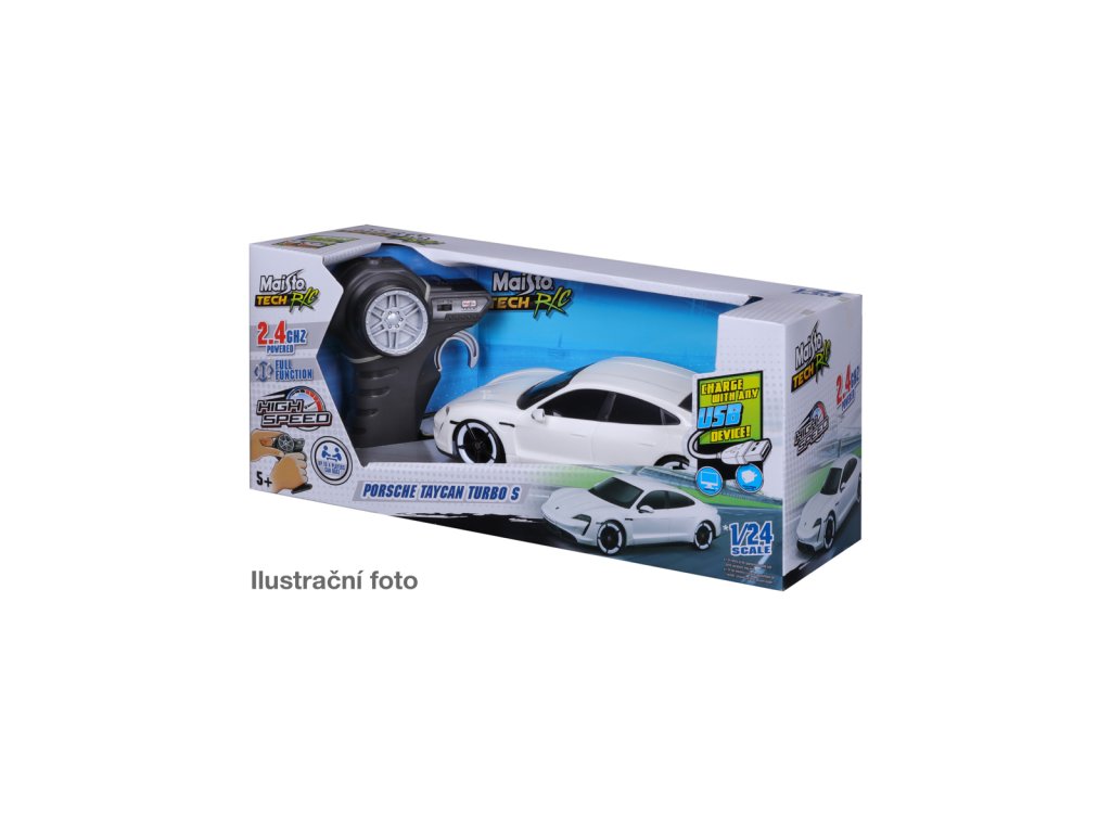TECH RC Premium. RC modely na dálkové ovládání: Bugatti Divo (2,4 GHz), Ford GT (2,4 GHz), McLaren 12C GT3 (2,4 GHz), BRE Datsun 510 (2,4 GHz), Lamborghini Sian FKP 37, Porsche Taycan Turbo S. Frekvence: 2,4 GHz, baterie jsou součástí balení, vozidlo - vestavěná akumulátorová baterie - nabíjení přes USB kabel, ovladač-2ks 1,5V AAA, dosah vysílače-cca 35 metrů, doba jízdy-20 minut, rychlost-8,6 km/h, délka modelu cca 20 cm. Frekvence 2,4 GHz umožňuje souběžnou a rychlou jízdu až se 4 RC modely bez rádiového rušení. Nevhodné pro děti do 3 let. Assort je náhodný mix modelů. Výběr nelze ovlivnit. Věk: 5+