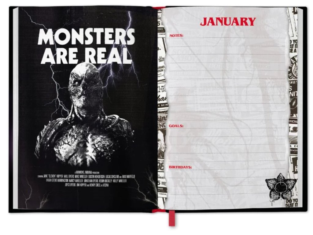 Celoroční praktický plánovací A5 diář s obrázky a grafikou Stranger Things.
