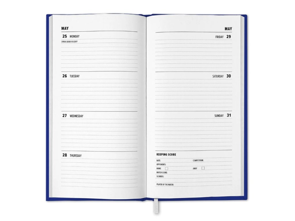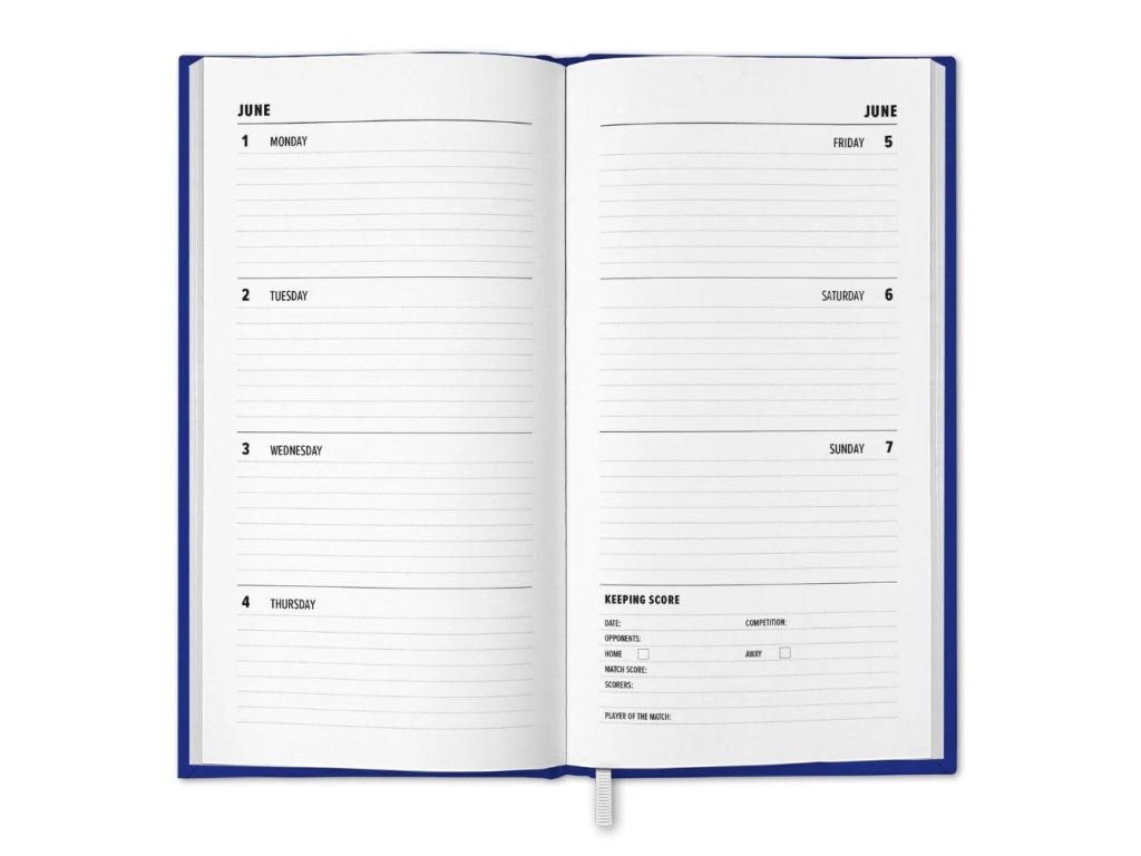 Celoroční praktický plánovací malý, týdenní slim diář s obrázky a grafikou britského fotbalového klubu FC Chelsea.