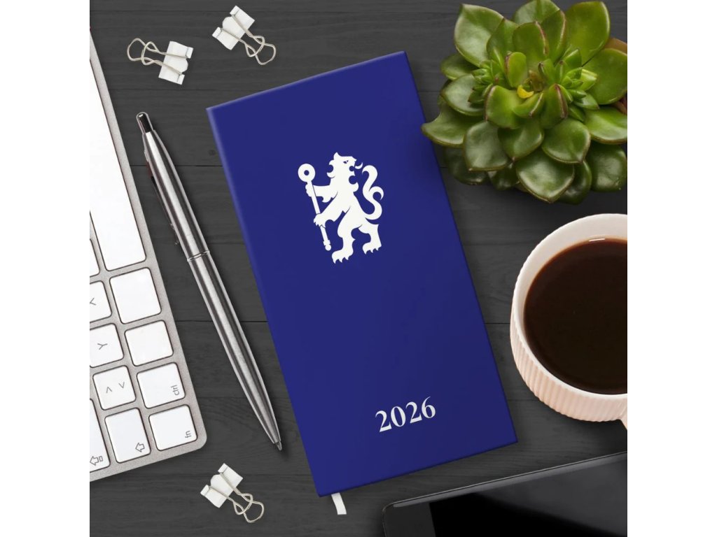 Oficiální produkt - slim diář na rok 2026 s licencí a grafikou britského fotbalového klubu FC Chelsea.