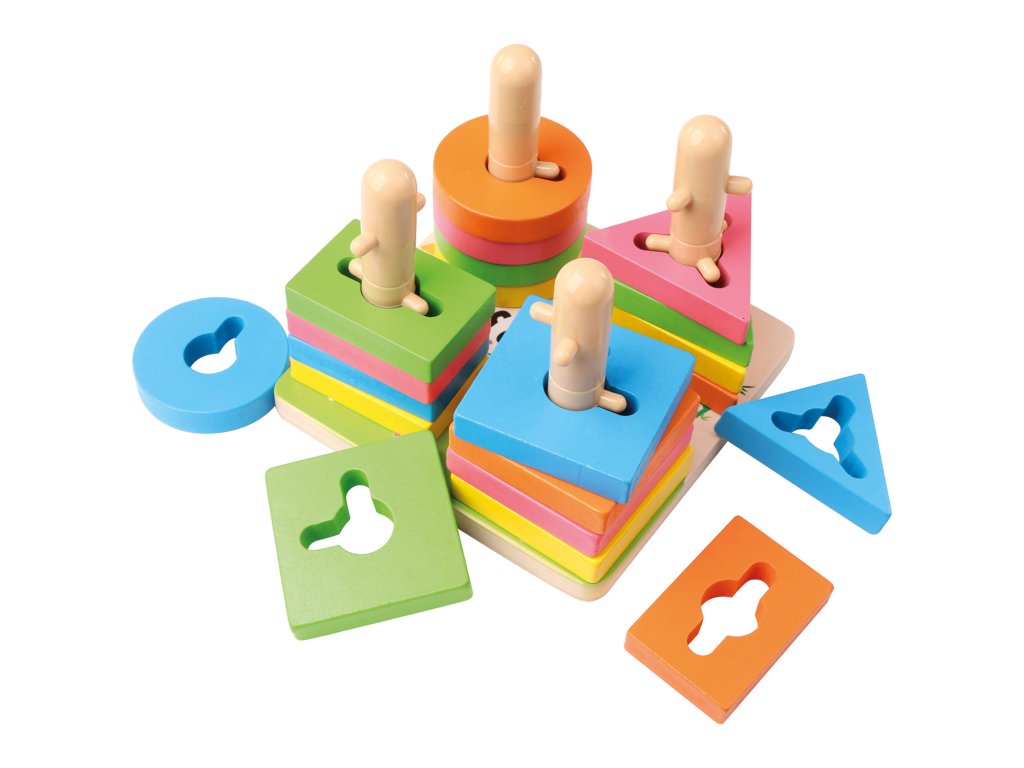 Různorodé typy kostek těchto dětských hraček lze kreativně skládat na sebe a účinně tak rozvíjet představivost vašeho dítěte. Design sloupců a otvorů je ideální pro hraní párové hry. Rozvojové hračky s krásnou barvou upoutají pozornost dětí, které si s touto hračkou užijí zábavu. Pomohou dětem při hře rozpoznávat barvy a tvary a zároveň procvičí jejich prostorové pojetí a koordinaci ruky a oka. Věk: od 3 let, rozměry výrobku: 15x11,5x15 cm, počet dílů: 21 ks, materiál: dřevo.