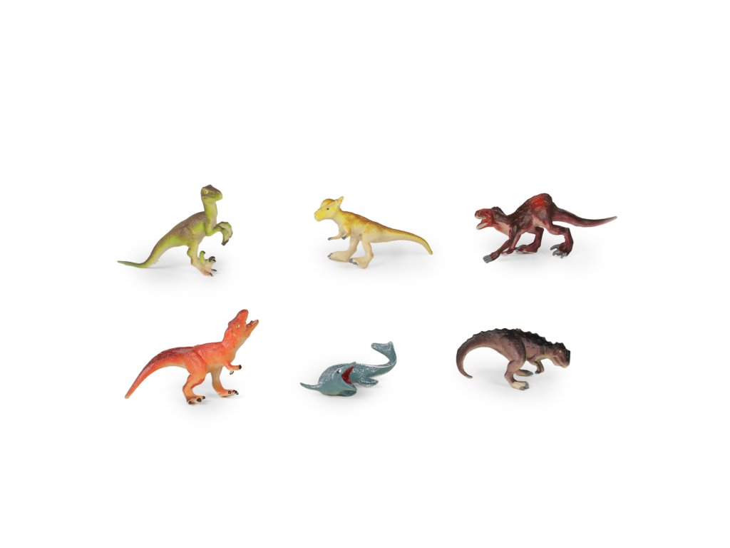 Prehistorická zvířata v sadě po 6 ks. Jsou vyrobena z kvalitní, tvrdé gumy. Velikost zvířátka cca 7-8 cm.