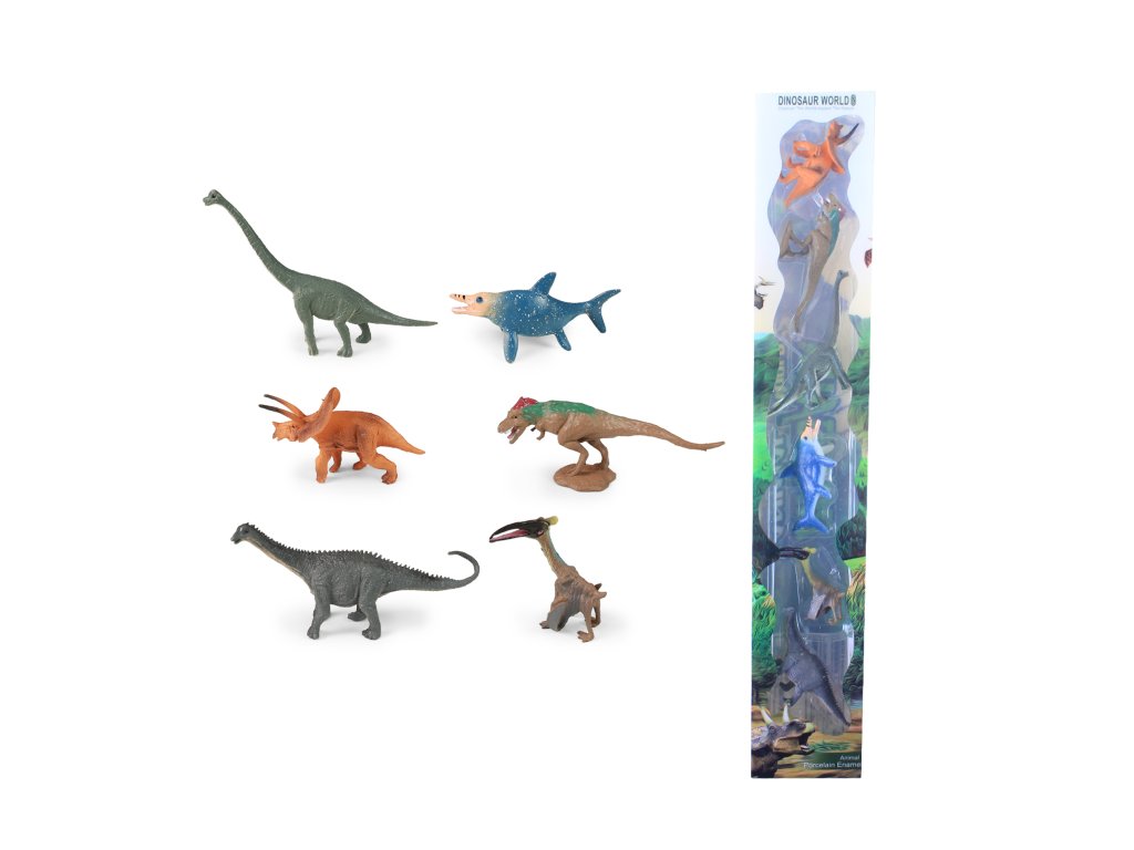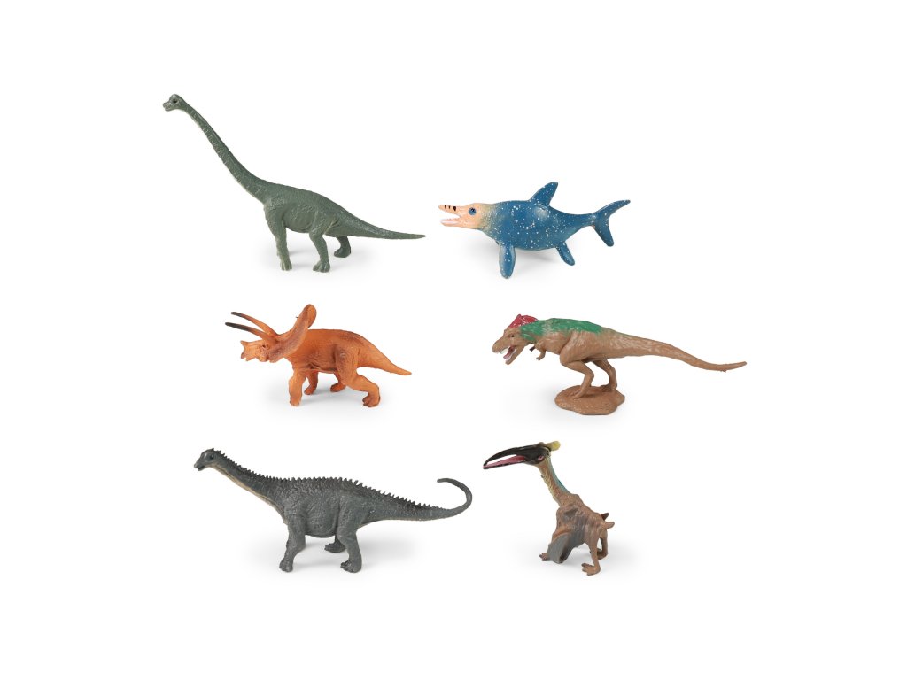 Prehistorická zvířata v sadě po 6 ks. Jsou vyrobena z kvalitní, tvrdé gumy. Velikost zvířátka cca 5-9 cm.
