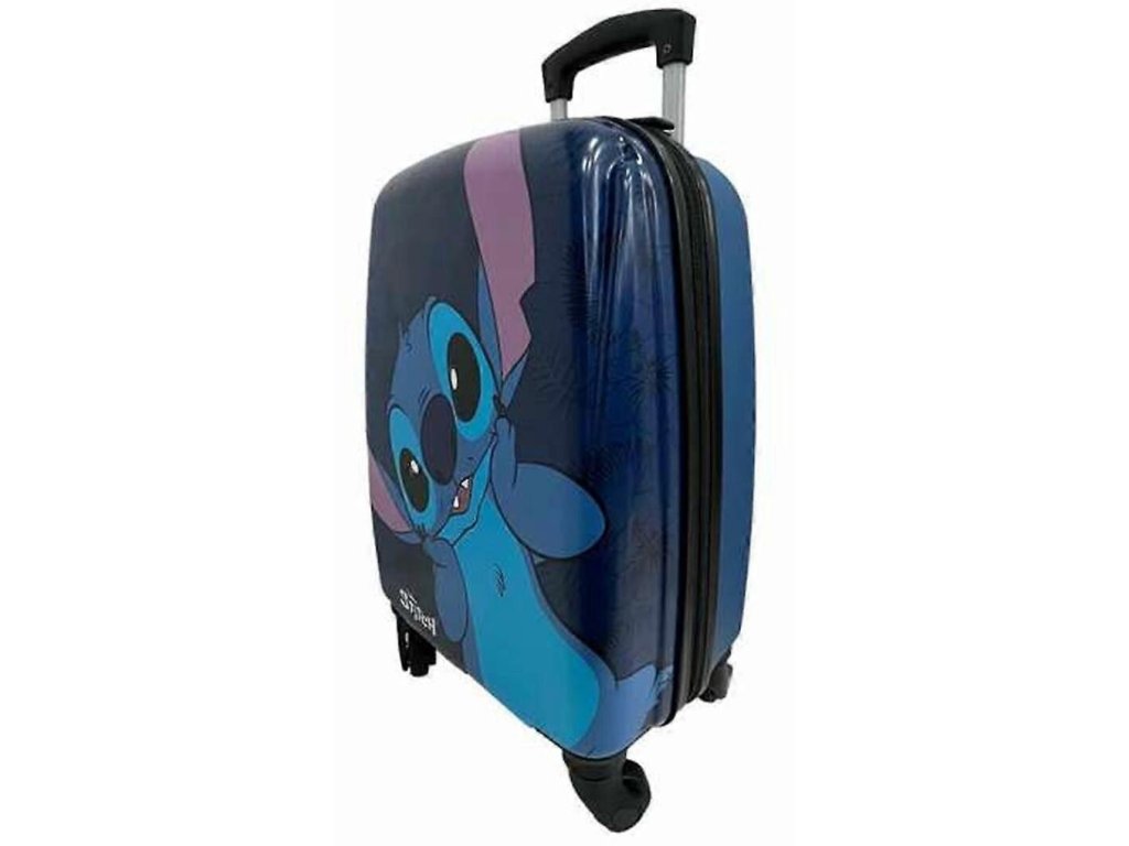 Praktický cestovní kufr na kolečkách v černé barvě vyvedený s grafikou postavy Stitch.