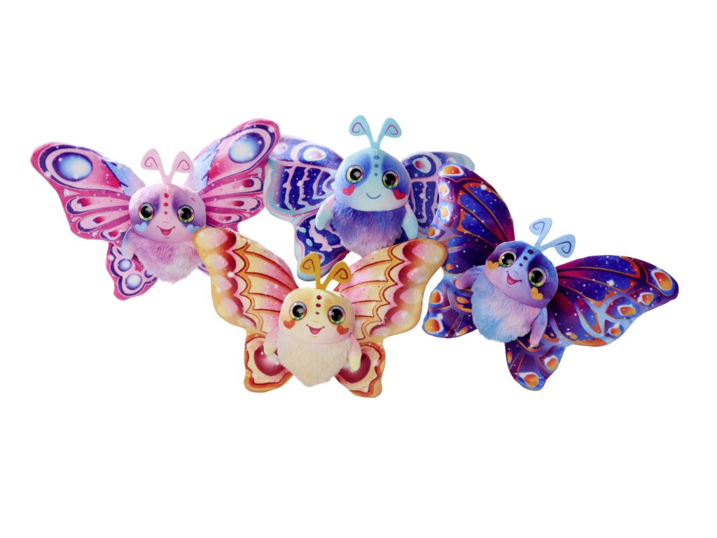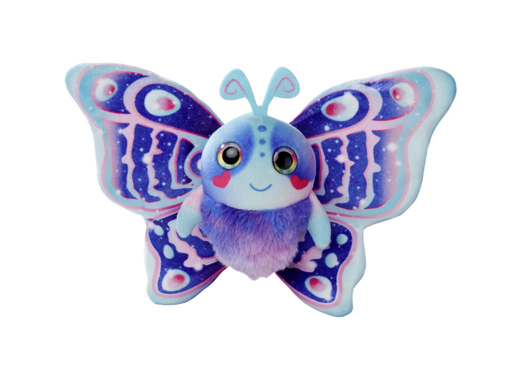 Plyšoví motýlci Fluffyfly s měkkým látkovým tělíčkem září krásnými barvami. Lehce nadýchaní Fluffyfly motýlci se rozvinou přímo z obalu v doprovodu konfet: stačí nafouknout křídla, která se roztáhnou! Materiál tělíčka je jako dělaný k mazlení, ve 4 barevných provedeních s duhovýma očíčkama. Chytré poutko k zavěšení. Pokud Fluffyfly časem ztratí objem, můžete jej jednoduše znovu přifouknout a bude opět zářit v celé své kráse! Výška motýlka12 cm, s tykadly 16 cm, rozpětí nafouknutých křídel 30 cm.