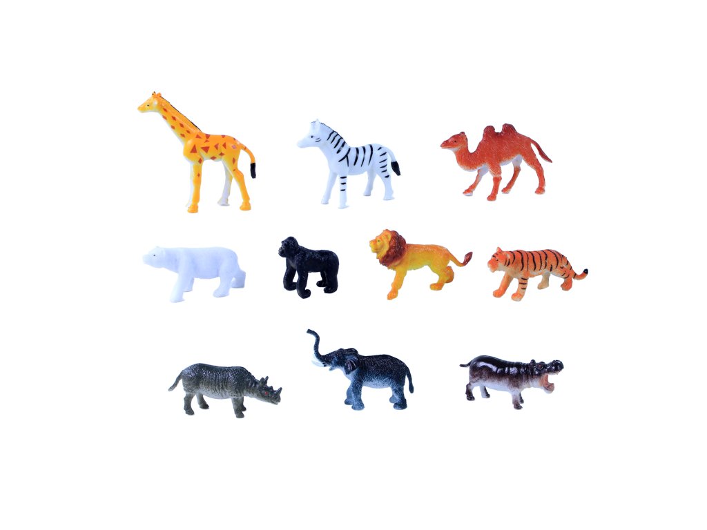 V balení najdeš 10 ks divokých zvířat, jako jsou slon, lední medvěd, žirafa, velbloud, zebra…. Průměrná velikost figurek je 6,5 cm.