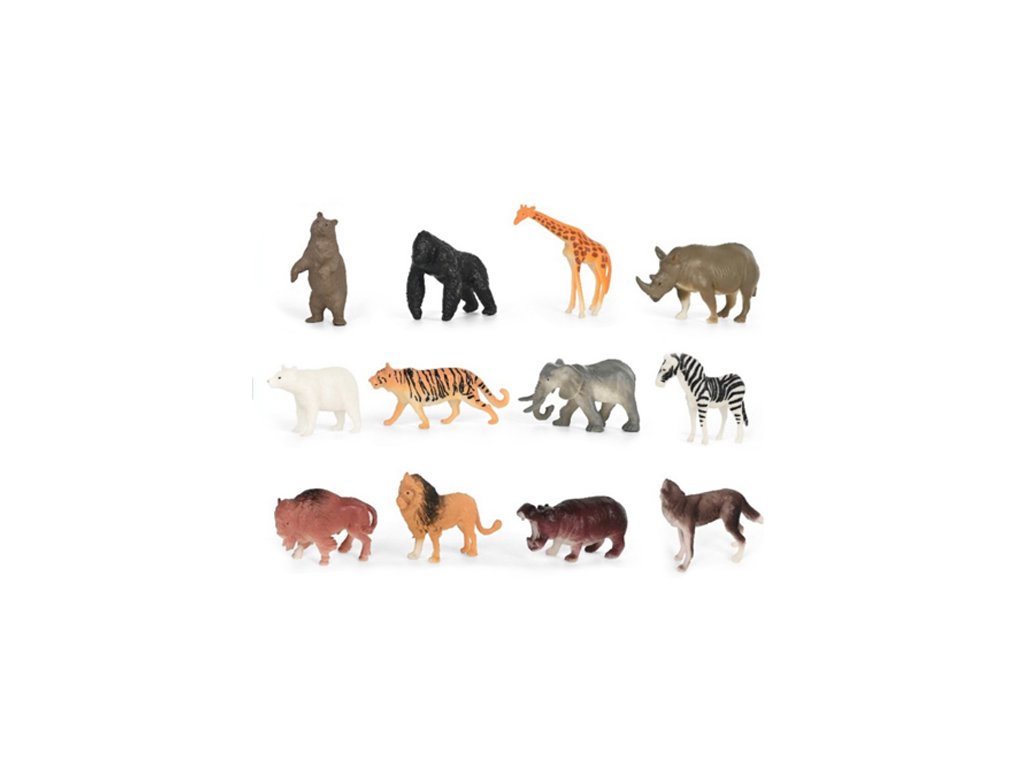 V balení najdete 12 ks různých figurek divokých zvířat, jako jsou slon, opice, tygr a jiné. Velikost zvířátek je cca 5-8 cm, záleží na druhu. Cena je uvedena za 1 ks.