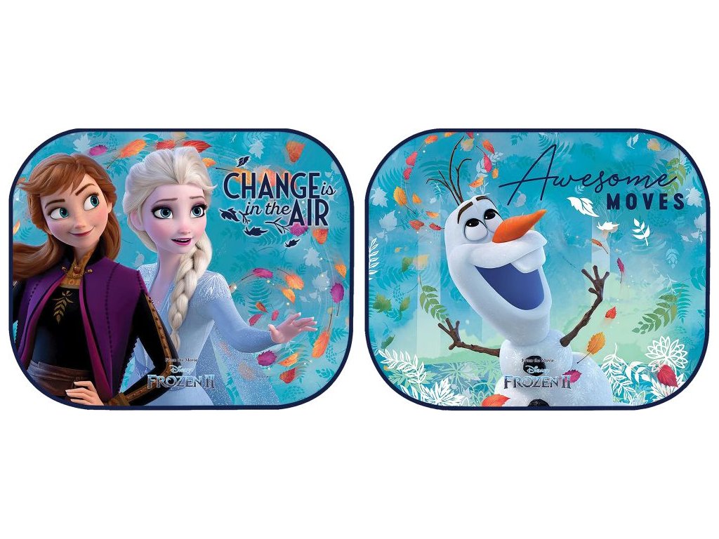 Sluneční clony Disney Frozen 2, které brání pronikání slunečních paprsků do vozidla. Jsou určeny na zadní, nebo boční skla automobilu. Upevnění pomocí přísavek.