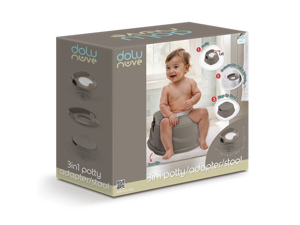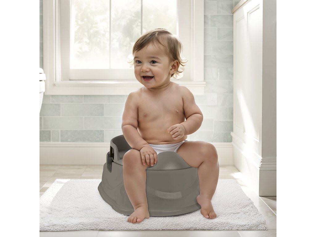 Tento praktický nočník 3 v 1 je díky svým funkcím dokonalým nočníkem pro nácvik chození na toaletu. Lze použít jako nočník, sedátko na WC nebo stoličku. Zpočátku slouží jako pohodlný nočník. Jakmile vaše dítě vyroste z nočníku, můžete sejmout sedátko a používat nočník jako stoličku a sedátko jako redukci WC prkénka. Nočník je vybaven protiskluzovými nožičkami, které zabraňují uklouznutí, a šikovné rukojeti usnadňují jeho přemisťování. Nočník v šedém odstínu Stone Gray má elegantní design, který se hodí do každého interiéru. Vhodné pro děti od 18 měsíců a do maximální nosnosti 25 kg. Vyrobeno z odolného plastu. Rozměry nočníku: 20 x 34,5 x 37 cm. Rozměry balení: 20 x 37 x 34,5 cm.