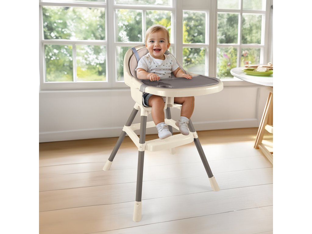 Dětská jídelní židlička s pultem, polstrováním a odnímatelným jídelním tácem, béžová, 90x70x60 cm