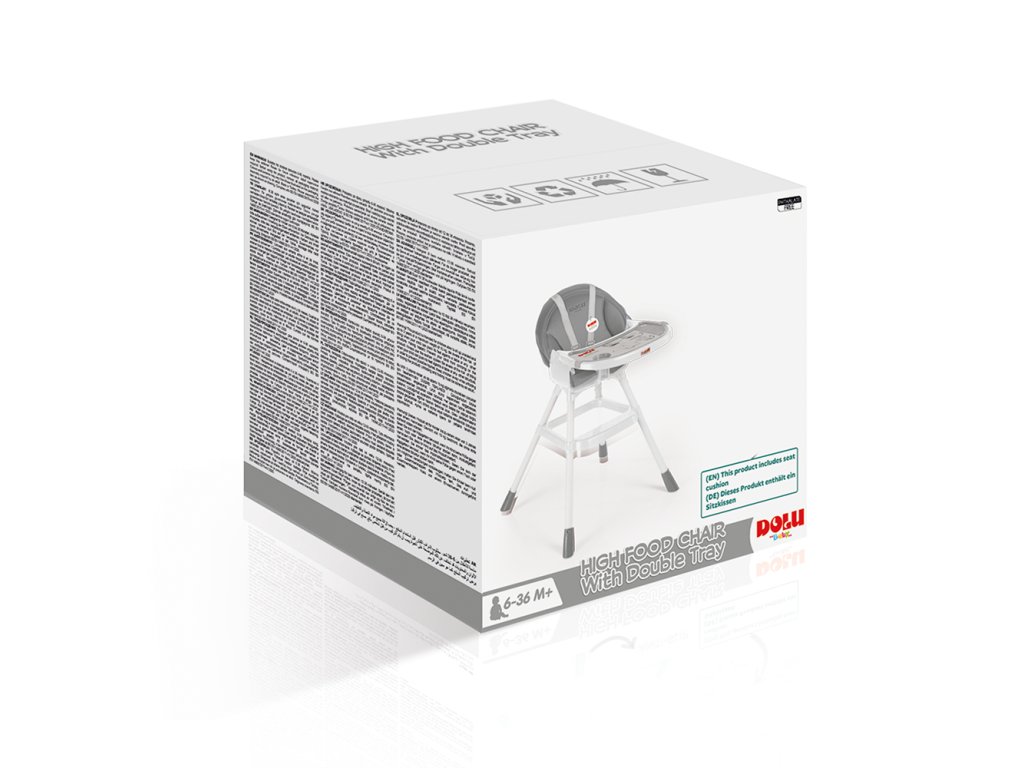 Elegantní dětská židlička v šedo-bílém provedení s pultíkem. Na pultíků je přídavný tác pro snadnější údržbu. Díky bezpečnostnímu pásu je zajištěna bezpečnost dítěte. Součástí je pohodlné polstrování. Snadno omyvatelná a stabilní. Vyrobeno z kvalitního a nezávadného plastu. Věk: 6m+. Rozměr: 90 x 70 x 60 cm. Váha: 3,45 kg. Nosnost 15kg.