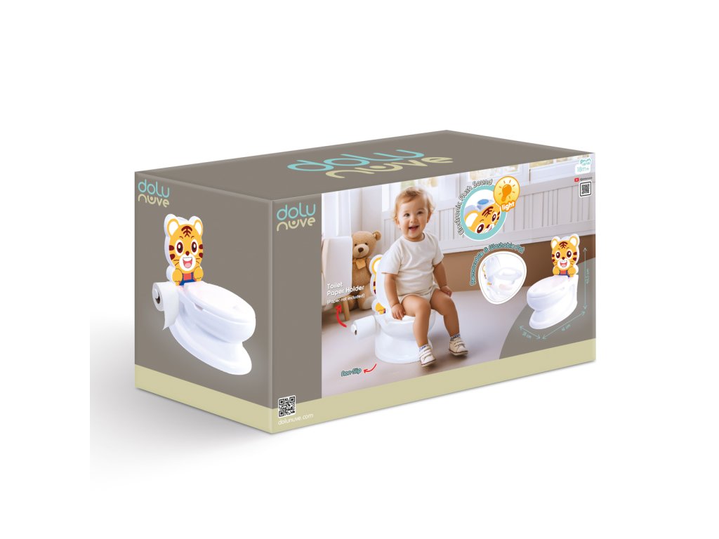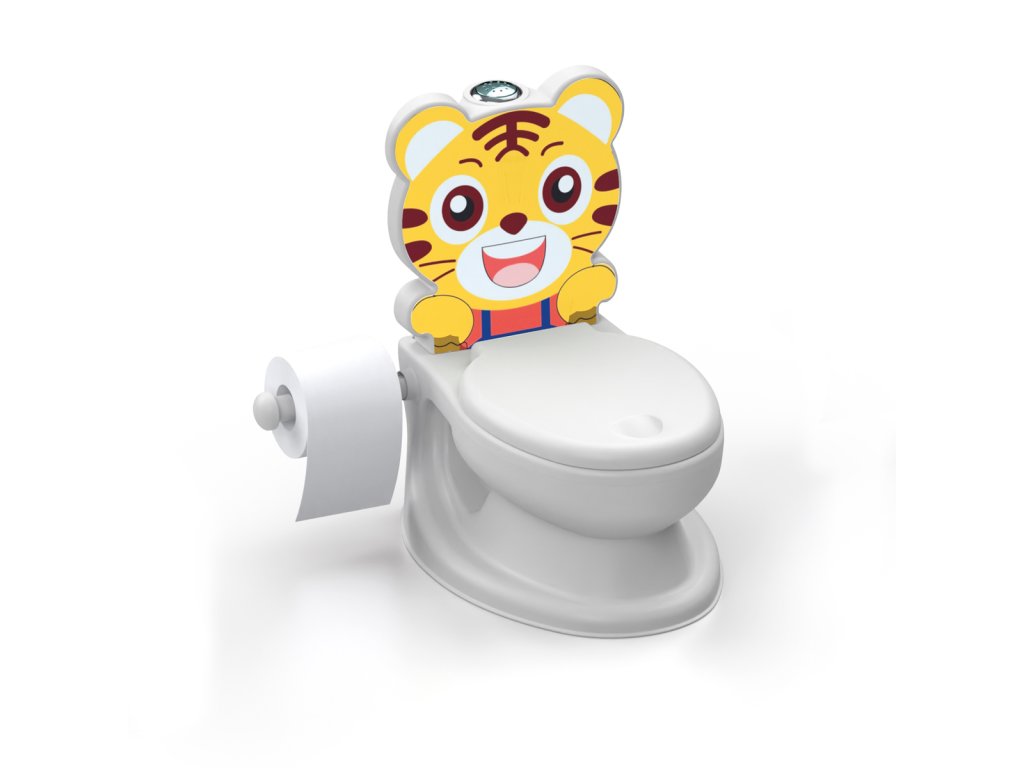 Dětská toaleta Tygřík speciálně navržená pro děti od 18 měsíců. Toaleta je vybavena zvukovými efekty a svítícím klaksonem. Vestavěný držák toaletního papíru. Vyjímatelná vnitřní komora umožňuje snadné vyprazdňování a čištění. Protiskluzová základna pro větší stabilitu. Vyrobeno z měkkého materiálu, který je šetrný k citlivé dětské pokožce. Děti se mohou zapojit při učení na toaletu a bavit se, přičemž je zajištěno jejich pohodlí a hygiena. Rozměry toalety: 43,5 x 28 x 41,3 cm. Rozměr balení: 28 x 38 x 39 cm. Věk: 18 m+