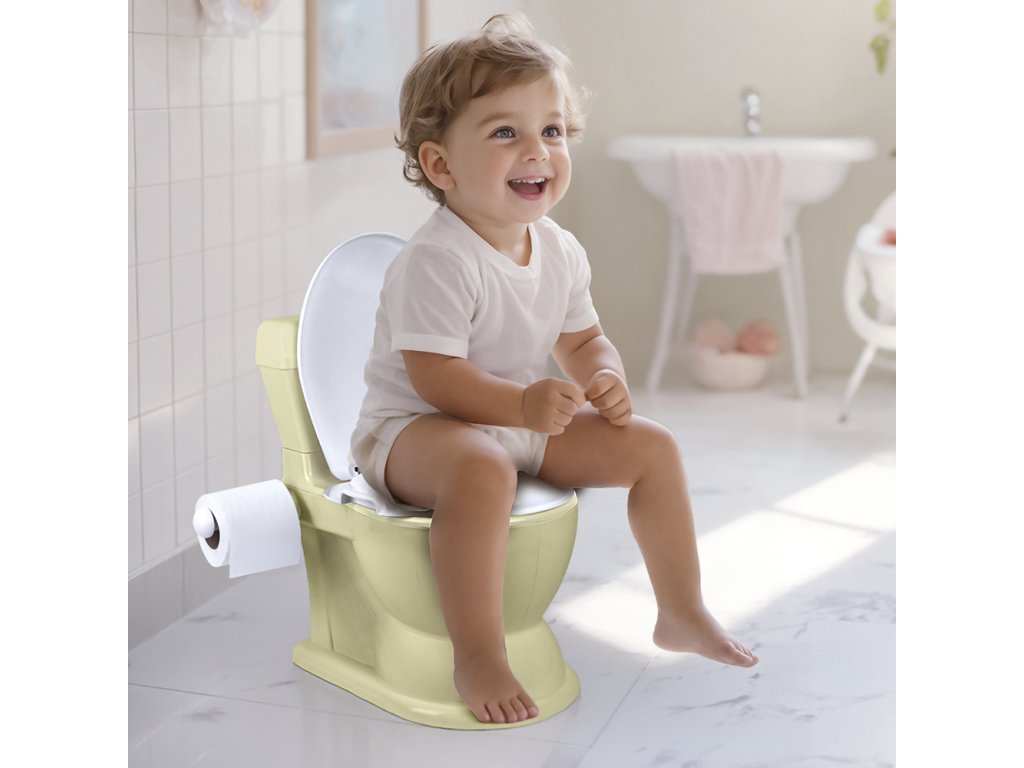 Začněte své děťátko učit na toaletu s realistickým nočníkem XL. Nočník vypadá jako skutečná toaleta. Je vybaven držákem na toaletní papír, tlačítkem se světelnými a zvukovými efekty a úložným prostorem. Po stisknutí tlačítka se ozve realistický zvuk spláchnutí. Protiskluzová základna pro lepší pro stabilitu a bezpečnost. Splachovací nádržka nočníku slouží jako úložný prostor, kde můžete uložit například vlhčené ubrousky. Vyjímatelná vnitřní komora pro snadné vyprazdňování a čištění zajišťuje dokonalou hygienu. Další výhodou je odnímatelné WC sedátko, které lze použít jako redukce WC prkénka na klasické toaletě. Nočník ve světle zeleném odstínu Eco Green má elegantní design a příjemný materiál, šetrný k citlivé dětské pokožce. Vhodné pro děti od 18 měsíců. Vyrobeno z odolného plastu. Potřebné baterie: 3 x 1,5V LR44 AG13 (jsou součástí). Rozměry nočníku: 45 x 28 x 40 cm. Rozměry balení: 45 x 28 x 40 cm.