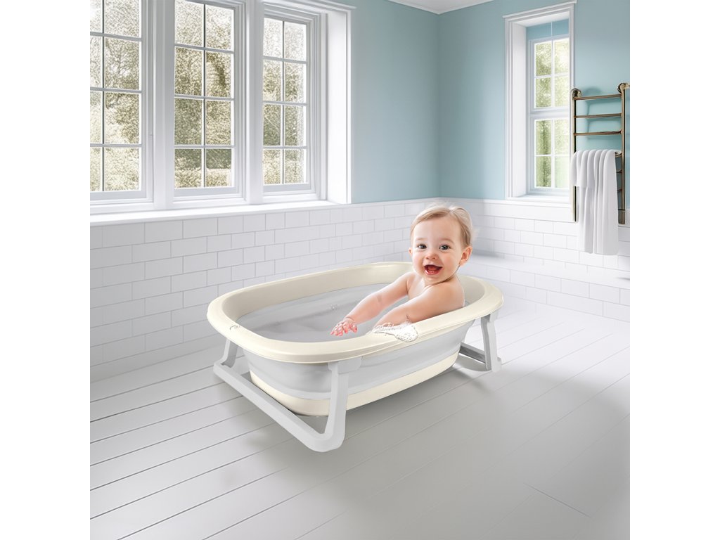 S touto praktickou skládací vaničkou můžete svému dítěti dopřát báječnou koupel pohodlným a komfortním způsobem. Vana je prostorově úsporná, skládací konstrukce vám ušetří místo v koupelně. Stylové a snadno skládací provedení s nožičkami, které se pohodlně skládají i rozkládají. Skládací konstrukce vám umožní si s sebou vzít vaničku kdykoliv na cesty. Před každým použitím se ujistěte, že jsou nohy zcela vysunuté a stabilně položené na podlaze. Vodu snadno vypustíte přes uzamykatelnou zátku. Dětská vanička v bílém a béžovém odstínu Relax beige má elegantní design a je vyrobena z odolných plastových materiálů. Vhodné pro děti od 6 měsíců. Rozměry vaničky: 20,5 x 46,5 x 75,5 cm. Rozměry balení: 20,5 x 46,5 x 75,5 cm.