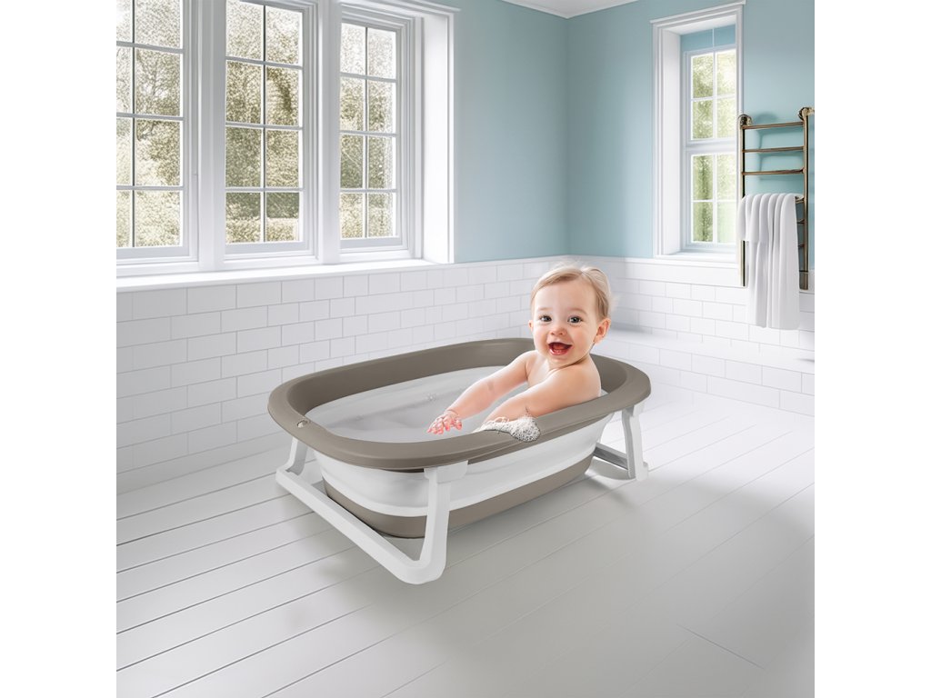S touto praktickou skládací vaničkou můžete svému dítěti dopřát báječnou koupel pohodlným a komfortním způsobem. Vana je prostorově úsporná, skládací konstrukce vám ušetří místo v koupelně. Stylové a snadno skládací provedení s nožičkami, které se pohodlně skládají i rozkládají. Skládací konstrukce vám umožní si s sebou vzít vaničku kdykoliv na cesty. Před každým použitím se ujistěte, že jsou nohy zcela vysunuté a stabilně položené na podlaze. Vodu snadno vypustíte přes uzamykatelnou zátku. Dětská vanička v bílém a šedém odstínu Stone gray má elegantní design a je vyrobena z odolných plastových materiálů. Vhodné pro děti od 6 měsíců. Rozměry vaničky: 20,5 x 46,5 x 75,5 cm. Rozměry balení: 20,5 x 46,5 x 75,5 cm.