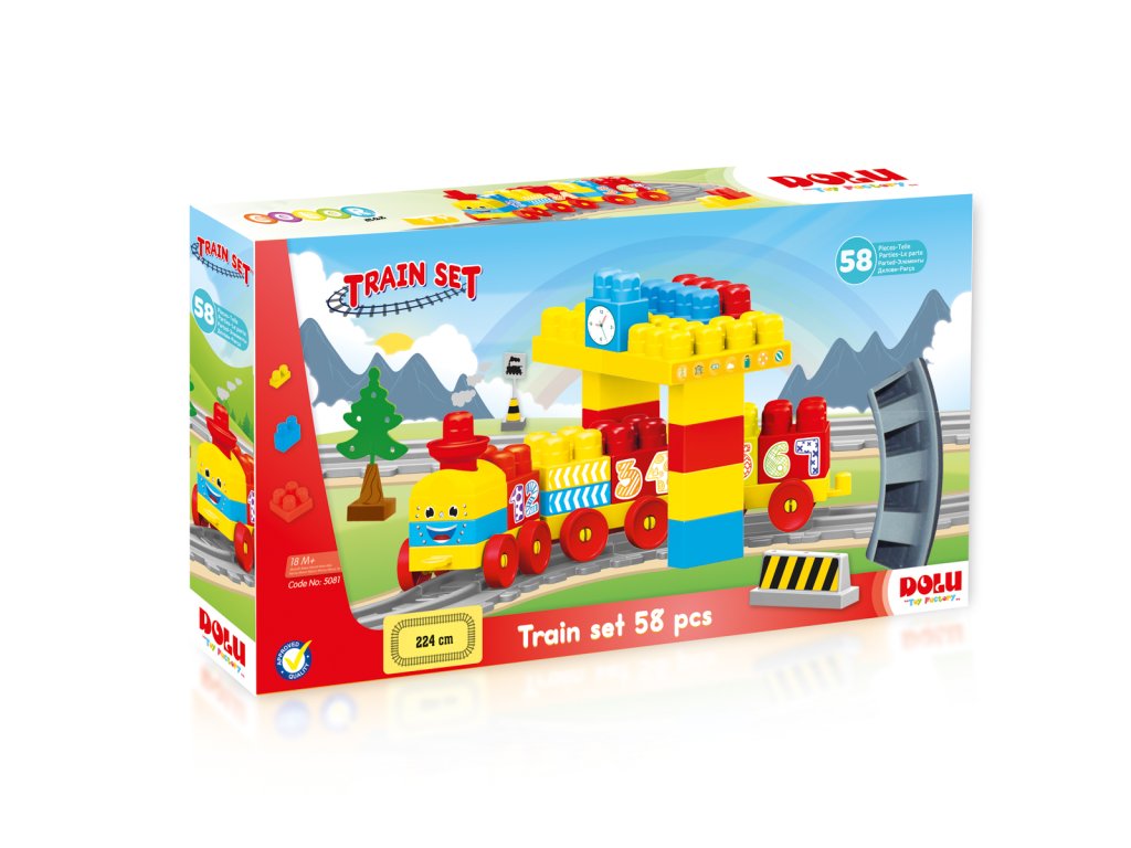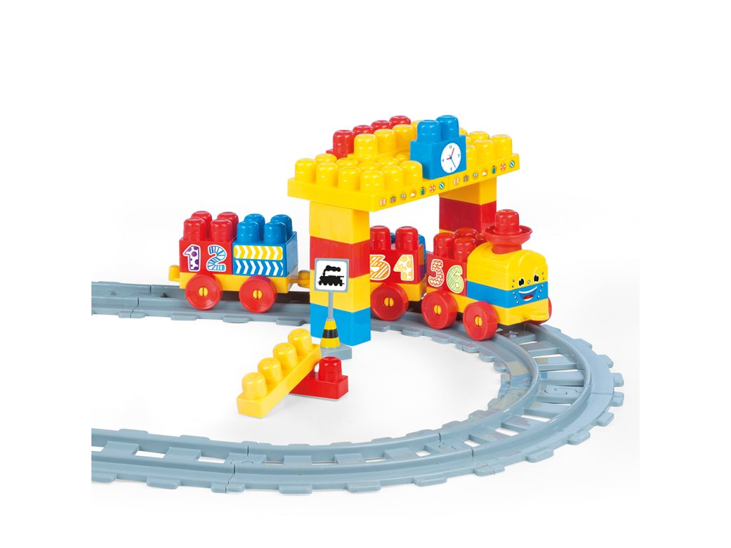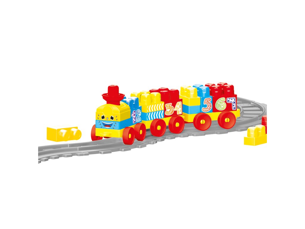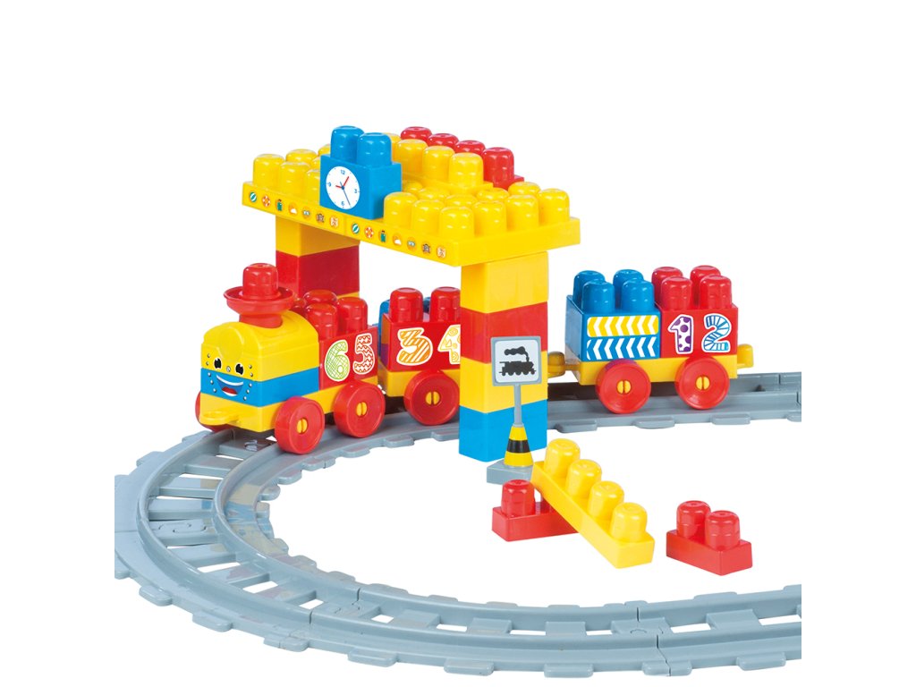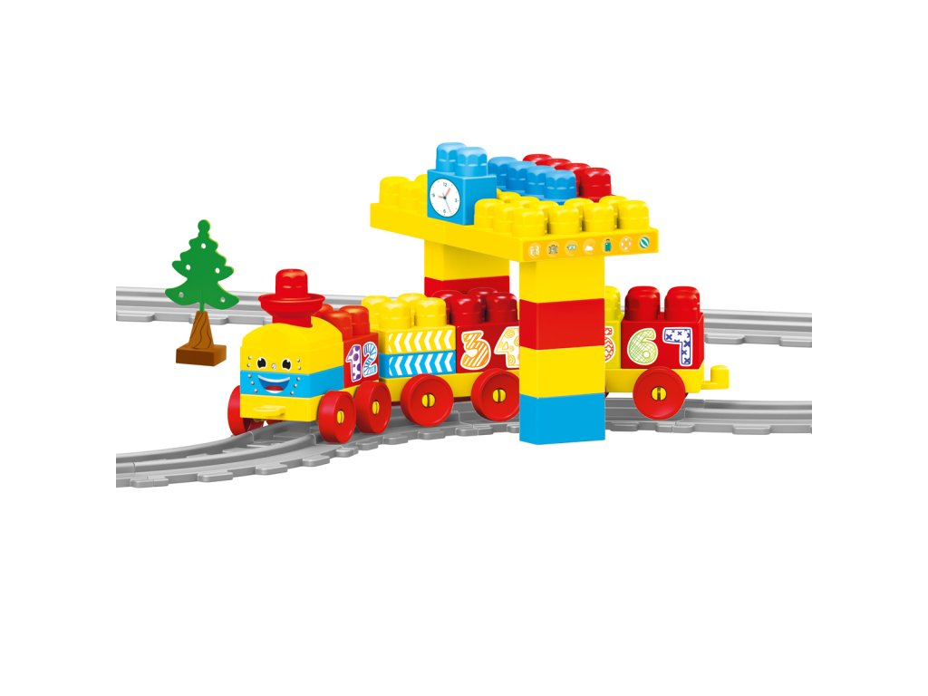Všichni malí strojvedoucí zajásají! Tato dětská vlaková souparava má spoustu příslušenství, díky kterému bude hra úžasná zabava. Krásné barevné provedení. Vagonky mají na sobě čísla, díky kterým se je děti mohou naučit rozeznávat. Vláčkodráha je vyrobena z kvalitního a odolného materiálu. Délka kolejí je 224 cm. Balení obsahuje 58 dílků. Věková kategorie: 18m+. Velikost produktu: 51 x 90 x 18 cm