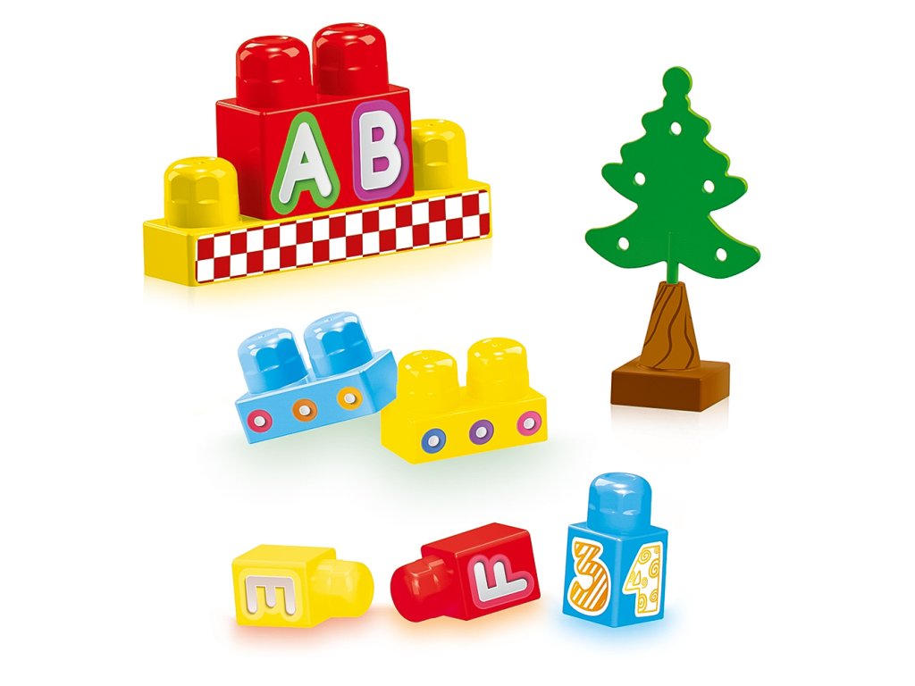 Sada plastových kostek a dalších dílů v různých barvách a velikostech. Balení obsahuje celkem 30 kusů. Hra s kostkami podporuje rozvoj dětské fantazie a kreativity. Kostky jsou lehké. Rozměr balení: 20x24,5x9,5 cm. Věk 18m+