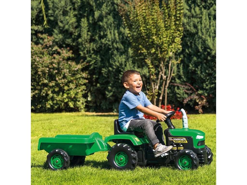 Velký šlapací traktor zaujme každého malého zemědělce. Díky přidané vlečce můžete odvézt spoustu nákladu. Traktor je vybaven šlapacím pohonem. Robustní konstrukce a kvalitní materiál. Reálně zobrazené detaily. Maximální nosnost: 50 kg. Rozměr: 53 x 143 x 45 cm. Rozměr balení: 83,5 x 39,5 x 43,5 cm. Věk: 3+. Video: https://www.youtube.com/watch?time_continue=2&v=CPGZCx91CkM