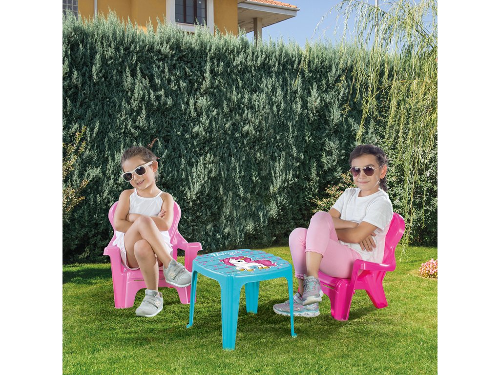 Dětský zahradní set stůl a 2 židle, jednorožec