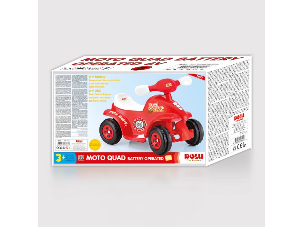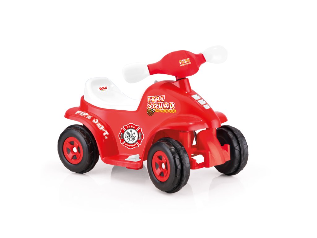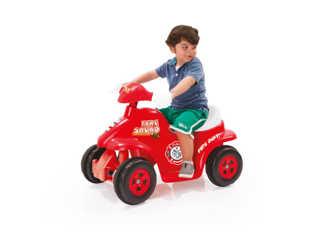 Hasičská čtyřkolka je vybavena plným řadícím systémem, který umožňuje plynulou jízdu vpřed nebo vzad. Automatický brzdový systém, který se deaktivuje sešlápnutím pedálu s plynem. - 6 V baterie - maximální nosnost 35 kg - rychlost 3,5 km/hod Rozměry výrobku: 61 x 81 x 53 cm Váha: 10,5 kg Věková kategorie: 36m +