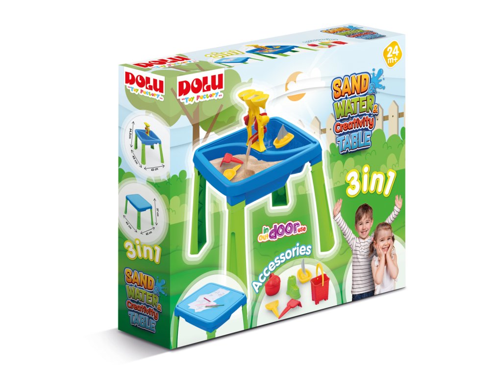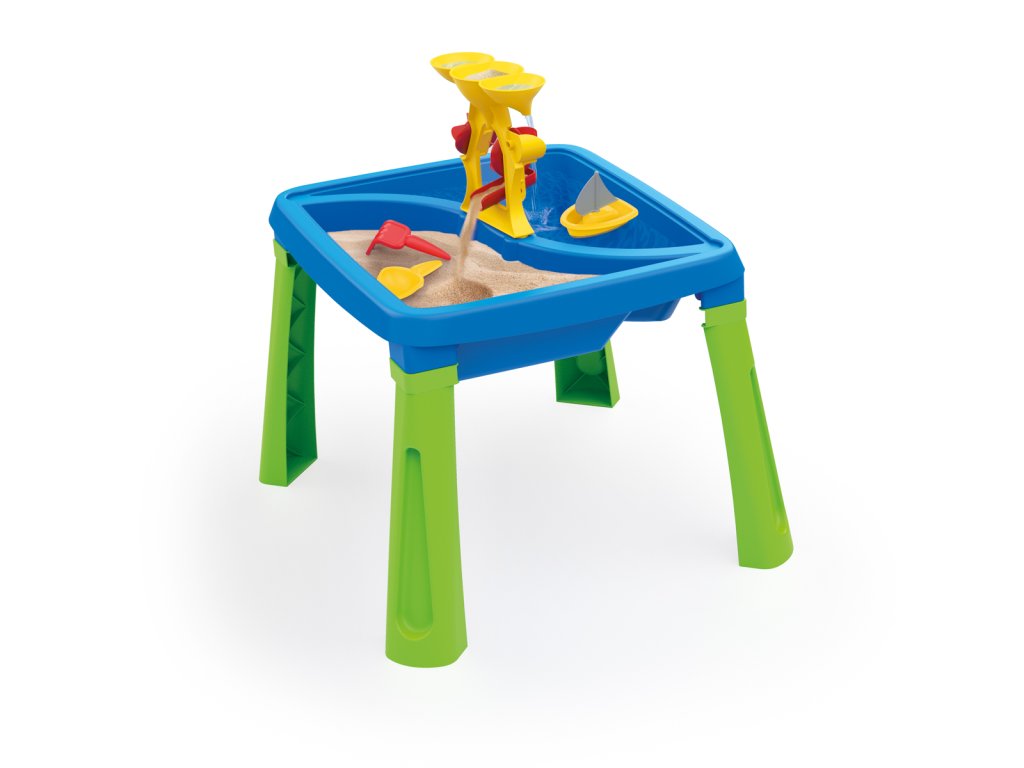 Hrací stolek 3v1, který budou vaše děti milovat. Stolek je vhodný pro vnitřní i venkovní použití. Sundáním vrchní desky, která slouží k psaní a kreslení, vznikne hrací plocha pro hru s vodou nebo pískem. Naberte vodu do kelímků, vylejte ji vrchního trychtýře a sledujte, jak voda roztočí lopatky vodního kola a padá v kaskádách dolů. Podporuje smyslový vývoj. Hraní s přáteli pomáhá rozvíjet důležité sociální dovednosti. Vyrobeno z kvalitního a odolného materiálu. Snadná údržba. Špunt pro snadné vypuštění vody. Sada obsahuje věž s vodním kolem, loďky, kelímky a bábovky na písek. Rozměry produktu: 54,2 x 45 x 45cm. Věk: 2+