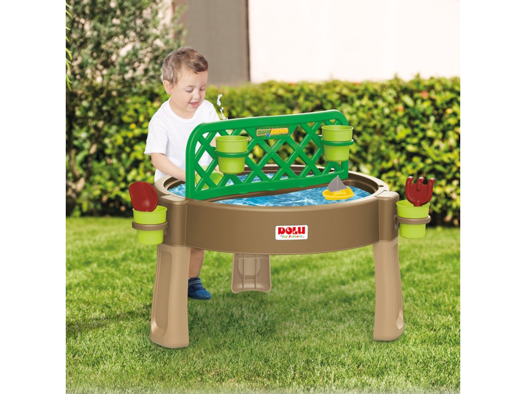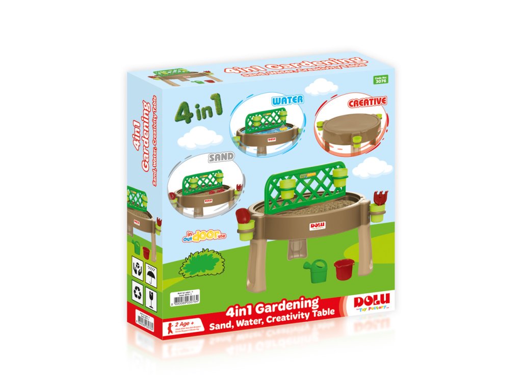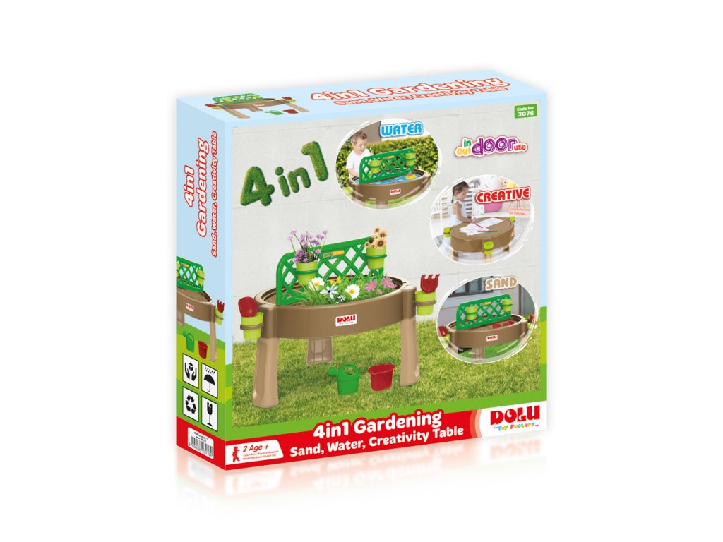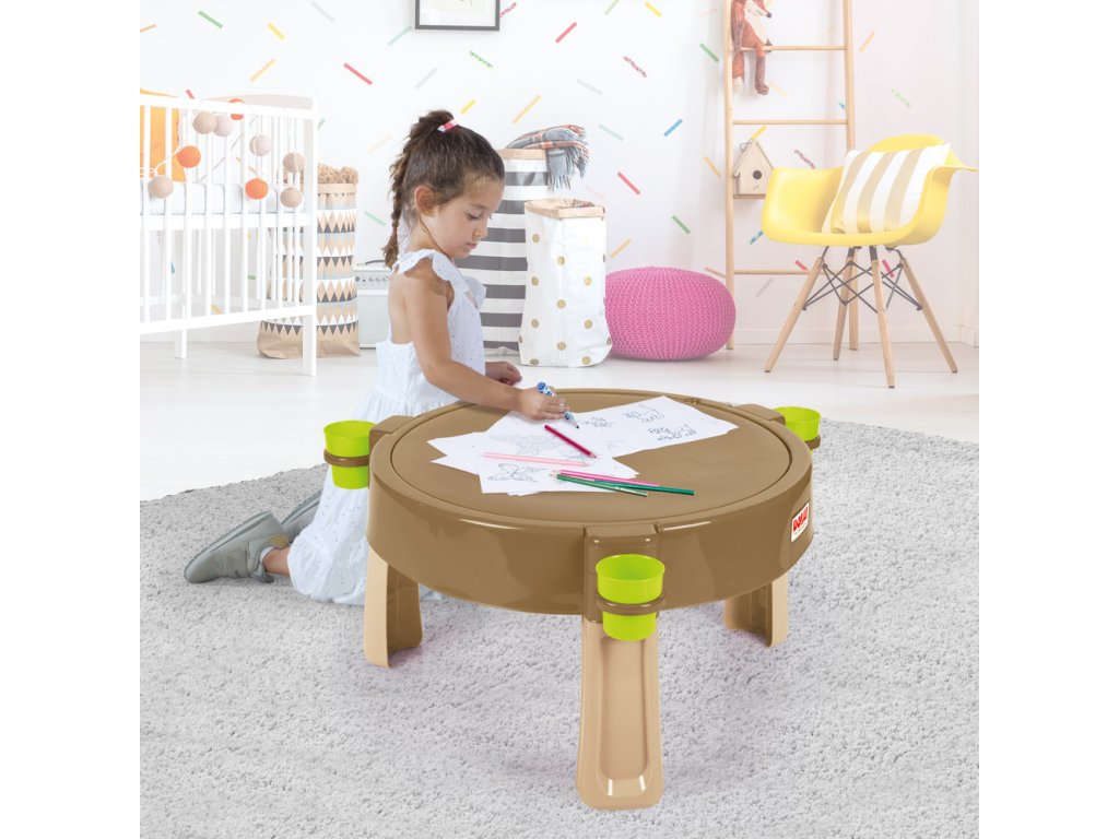 Hrací stolek 4v1, který budou vaše děti milovat. Stolek je vhodný pro vnitřní i venkovní použití. Sundáním vrchní desky, která slouží k psaní a kreslení, vznikne hrací plocha pro hru s vodou nebo pískem. Zkuste místo písku použít hlínu a udělejte si zahrádku. Podporuje smyslový vývoj. Hraní s přáteli pomáhá rozvíjet důležité sociální dovednosti. Vyrobeno z kvalitního a odolného materiálu. Snadná údržba. Rozměry: 65x98x98cm. Věk: 2+
