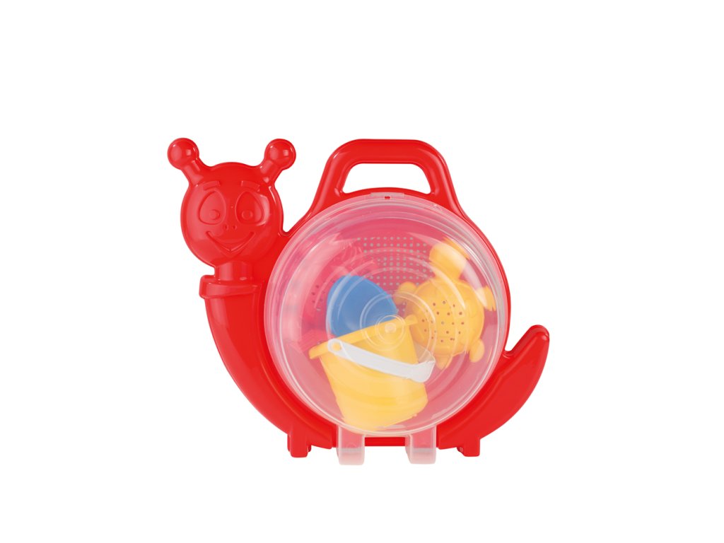Připravte se na letní plážovou zábavu. Sada šnek, hračky na písek obsahuje vše potřebné. Kopejte díry, postavte hrad z písku, vytvářejte tvary zvířat a mnoho dalšího. Tato barevná sada vybízí k nápadité hře. Sada obsahuje: 1 pouzdro ve tvaru šneka, 1 kbelík, 1 konev, 1 lopatka, 2 formičky. Rozměr 12x40x65,5cm Věk: 2+