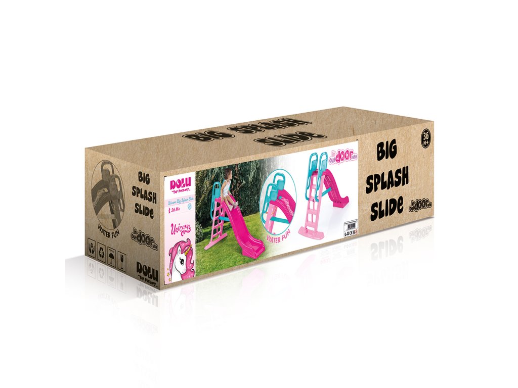 Růžová maxi vodní skluzavka s motivem jednorožce potěší každou malou holčičku. Skvělou zábavu zajistíte připojením zahradní hadice. Vyrobeno z kvalitního a odolného materiálu. Rozměr: 114 x 189 x 85 cm. Hmotnost: 10,3 kg. Věk: 2+