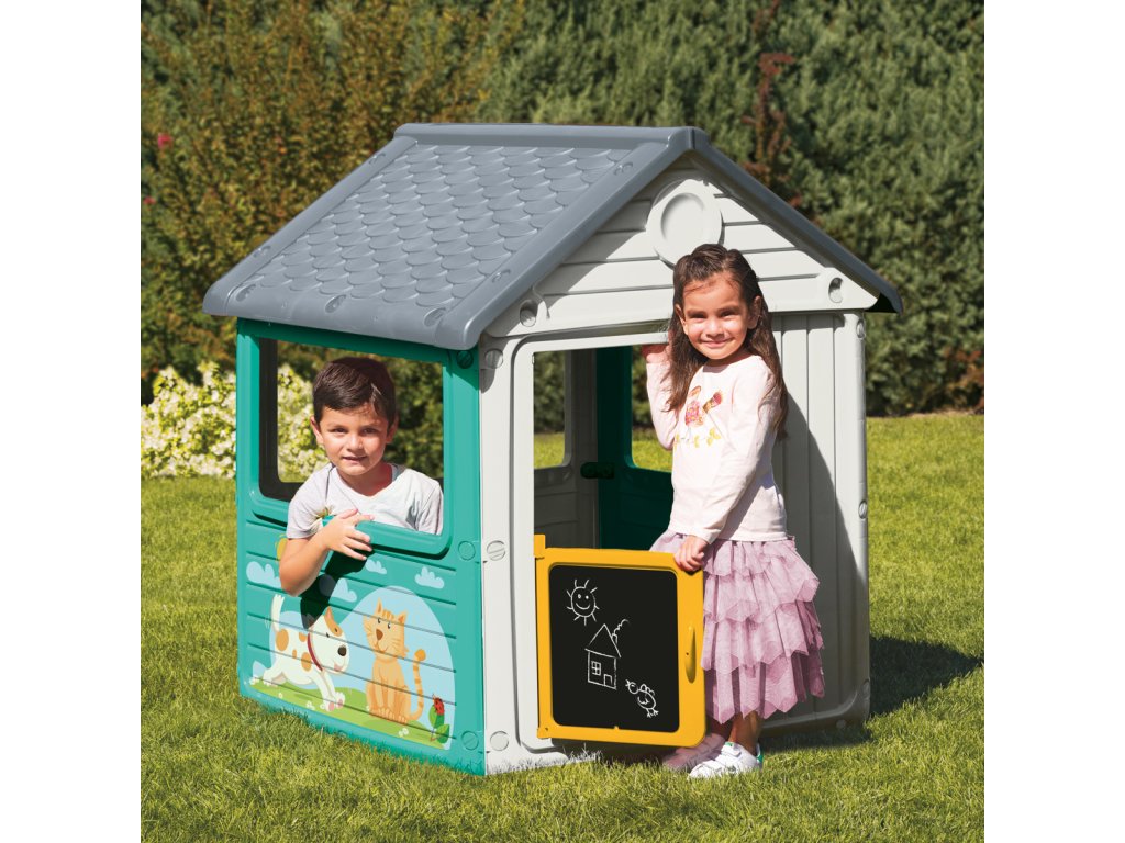 Nádherný barevný zahradní domeček. Dětský domeček bude skvělou zábavou dětem nejen na zahradě. Domeček má okna a dveře. Dobrodružství může začít! Vhodný pro vnitřní i venkovní použití. Vyrobeno z kvalitního a odolného materiálu. Jednoduchá montáž. Věk: 24m+. Rozměr: 125 x 100 x 104 cm. Balení: 93x101x18,5cm. Váha: 14kg.