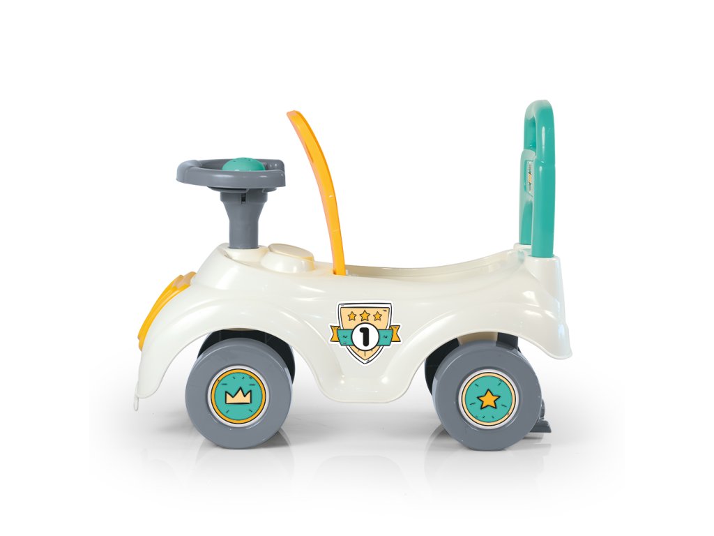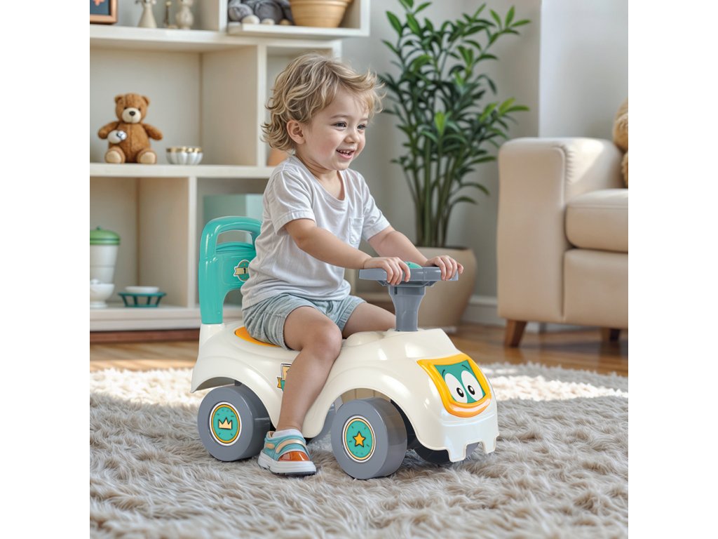 Dětské odrážedlo autíčko Sit‘n Ride je perfektní hračka pro malé začínající řidiče. Je ideální pro testování jejich řidičských schopností a rozvoj motoriky. Děti mohou na autě pohodlně sedět a odrážet se nohama, aby získaly rychlost. Dětské odrážedlo je také skvělý pomocník pro děti, které se učí dělat první krůčky, oporou jim bude zadní madlo a postupně tak získají sebejistotu. Autíčko ve veselém designu je vybaveno volantem s funkčním klaksonem a úložným prostorem pod sedátkem. Pomáhá s fyzickým rozvojem nejmenších, je vynikající pro zlepšení koordinace a motorických schopností. Vyrobeno z odolného plastu. Vhodné pro děti ve věku od 12 do 36 měsíců. Rozměry odrážedla: 37 x 20,5 x 47 cm. Rozměry balení: 37 x 48 x 21 cm.